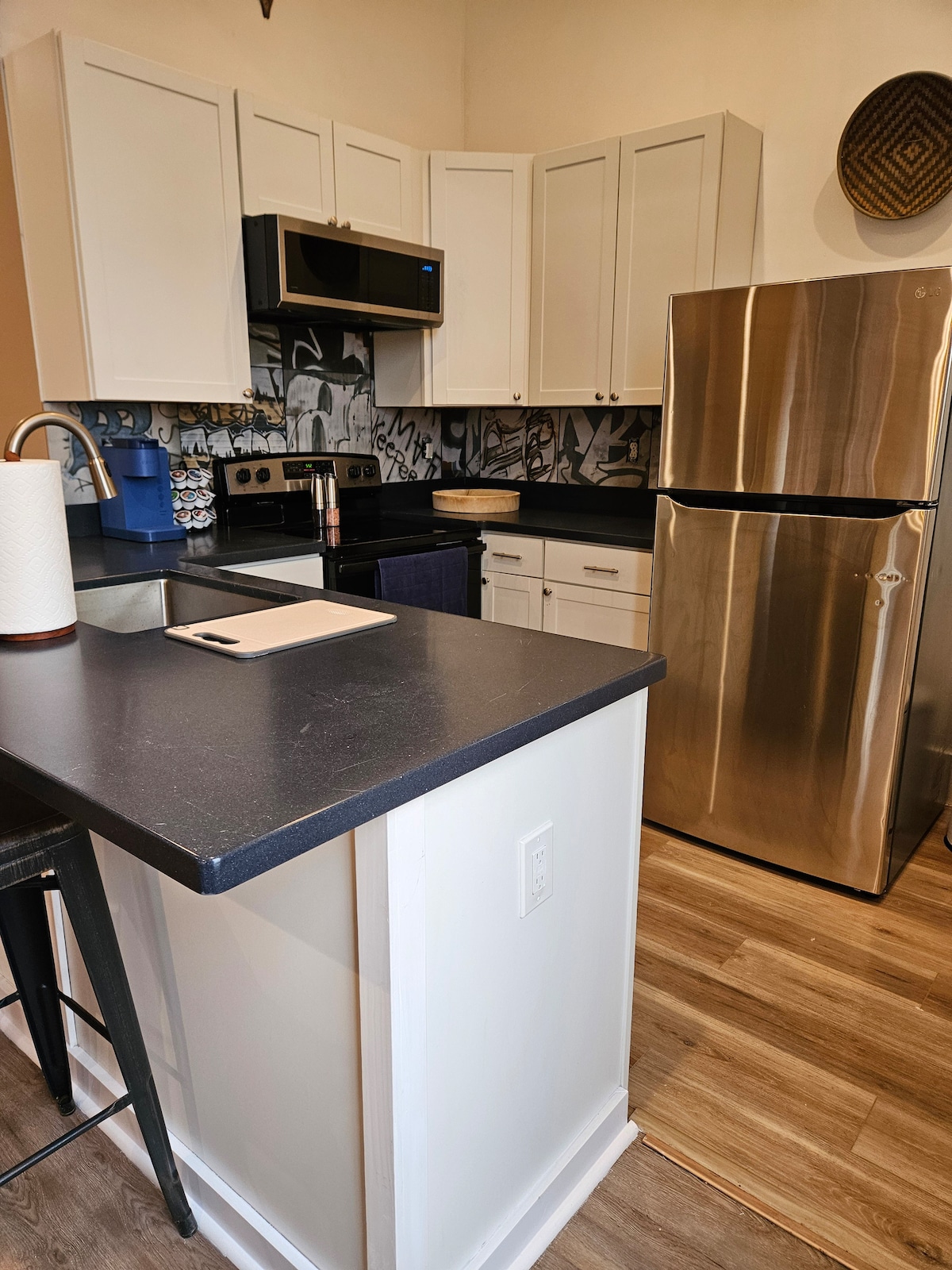 Relax in this calm, stylish 3 bedroom/2 full bath upper level unit. Another Airbnb is in the finished basement unit. The space is completely yours and no access to the other basement unit. Only shared area is the back deck. Unit has a completely updated kitchen with stainless steal and granite. Master bedroom has a super comfy queen bed and a master bath that has a beautiful walk in shower. Guest room has another queen bed and office area has a futon. Elegance and romantic boho style throughout!