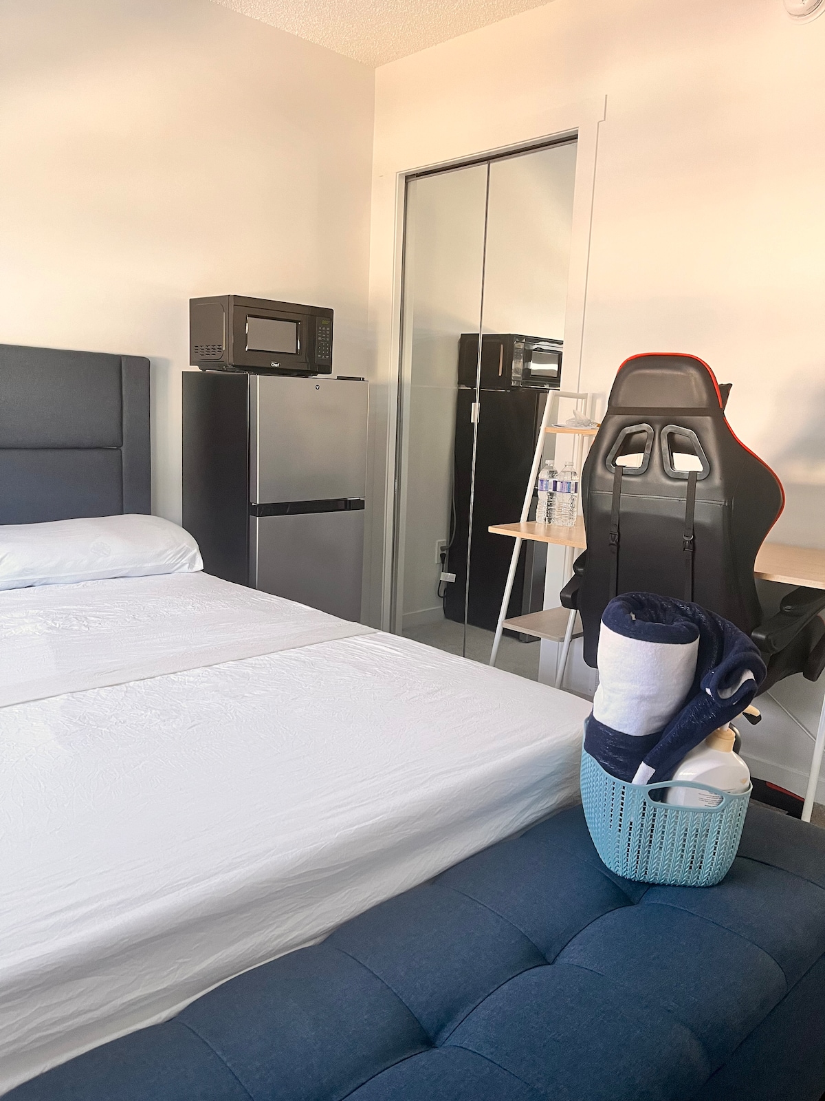 Dette unike loftet ligger i hjertet av Edmonton sentrum, i nærheten av Rogers Place, Grant MacEwan, UofA, River Valley, bondemarked, LRT og restauranter i massevis. Loftet har et åpent konsept med høyt tak, buet arkitektonisk design som gir deg den perfekte utsikten over sentrum. Tilpasset kjøkken, badstue, treningsrom, A/C, spa-lignende bad med walk-in-dusj og badekar. Ytterligere elementer inkluderer en kingsize- og queensize-seng, vaskerom i suiten, undergrunnsparkering (små biler og SUV-er), kaffemaskin, peis osv.