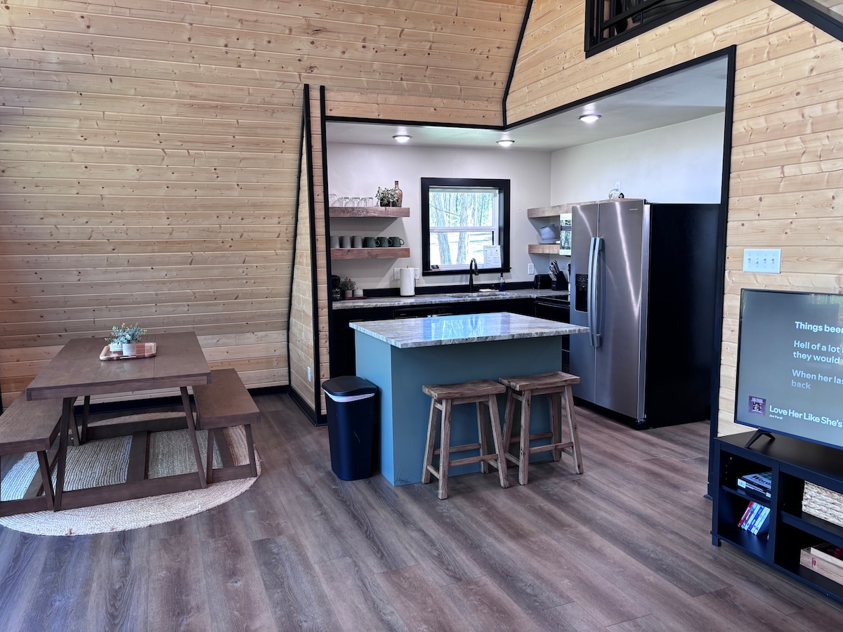 *Vi har nylig lagt til en ekstra vifte til loftet for å hjelpe til med sommervarmen og en branngrop med sitteplasser ute bak.* Trådløst fibernettverk, godt utstyrt kjøkken og utegrill! Utrolig beliggenhet, rett bak campingplassen ved inngangen til Petite Jean State Park! Dette unike stedet har sin helt egen stil. Hytta med A-ramme er gjennomtenkt designet for å maksimere plassen uten å ofre fasiliteter.