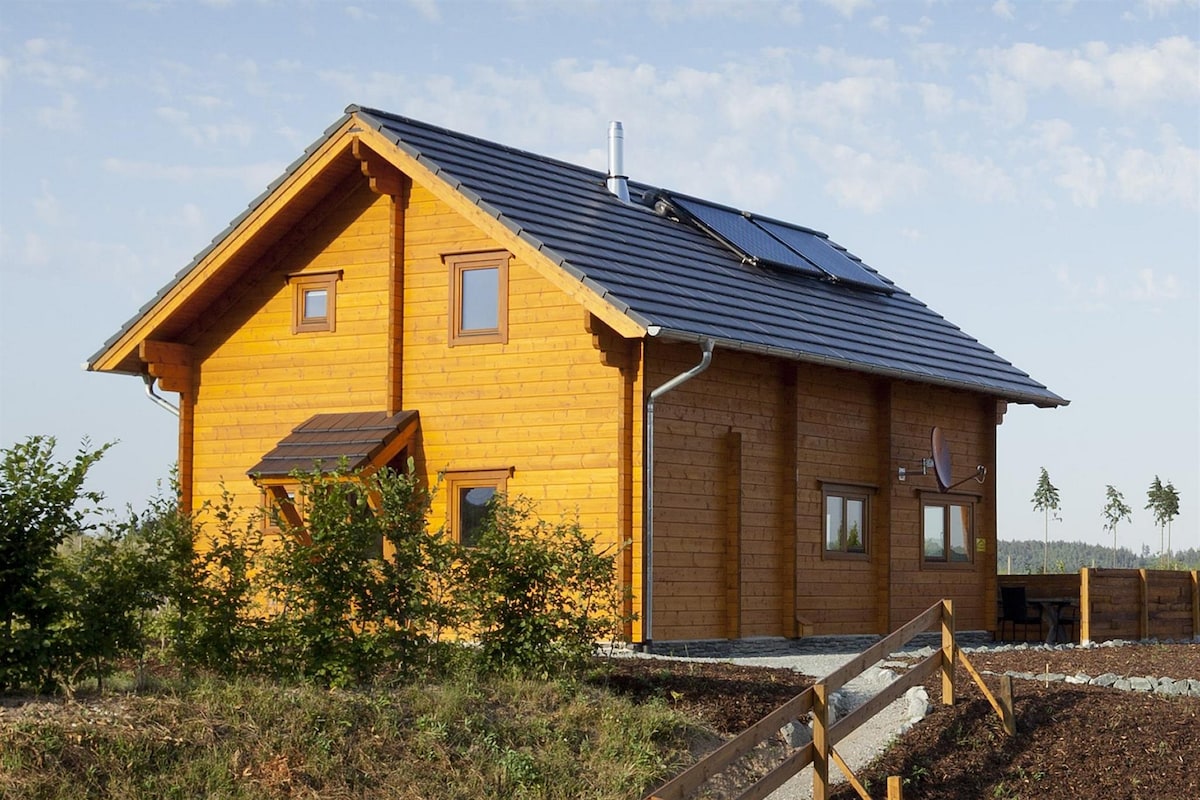 Koselig og komfortabelt treblokk/ feriehjem. Stille beliggenhet i nærheten av Winterberg og Willingen. Utsikt over fjellene, skog og marker. Butikker og restauranter er bare noen få minutter unna. Merk! Les beskrivelsen om grunnleggende fasiliteter og tilleggskostnader.