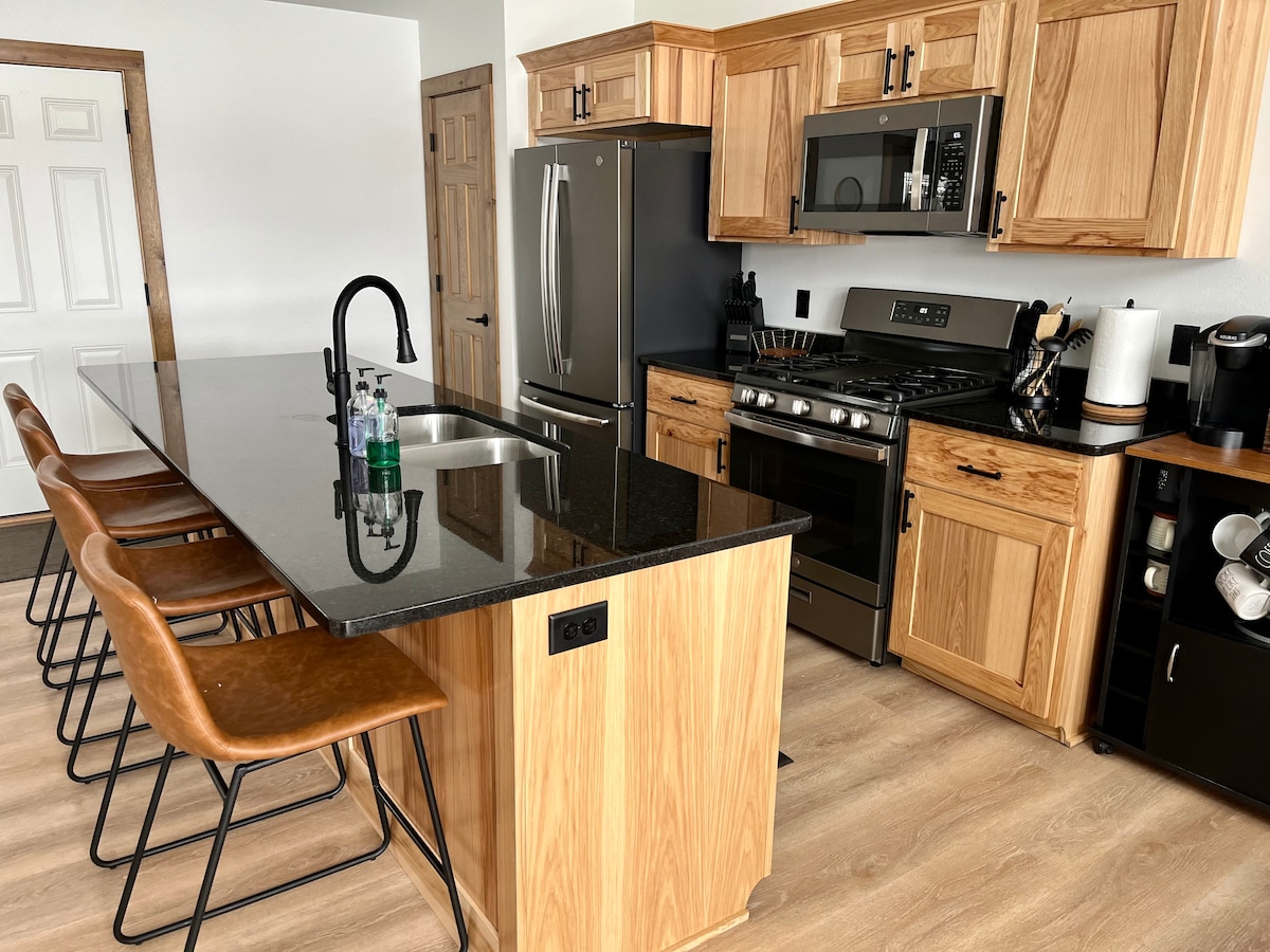 Koble deg til naturen igjen i denne vakre, moderne hytta på 2 hektar med utsikt over WI-elven. Den ligger i nærheten av Devil's Lake, WI Dells, Devil's Head og Cascade skianlegg, og det er det perfekte stedet å slappe av. Soverommene har en kingsize-seng, en queensize-seng og fire køyer – hver med eget bad. Gitt soverommet med køyesenger, godkjenner vi seks voksne eller opptil åtte hvis to er barn. Nyt leirbål rundt en Solo Stove og grill på Solo Stove Grill med trekull. Denne hytta er ny med ny innredning.
