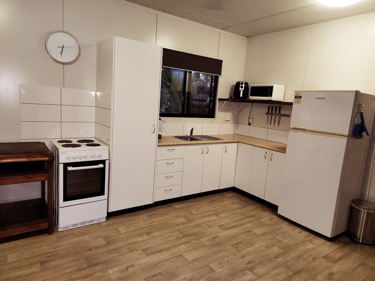 Enjoy the tranquility of tropical rural living in a stand-alone cottage, with a fully fenced garden, located at the front of a 5 acre property. Just off the Arnhem highway, the cottage is close to shops and is a gateway to Kakadu, popular fishing locations as well as being close to Litchfield and other attractions. The cottage has a fully equipped kitchen, a well stocked bookshelf and lots of board games for you to enjoy. A great place for you to relax and unwind.