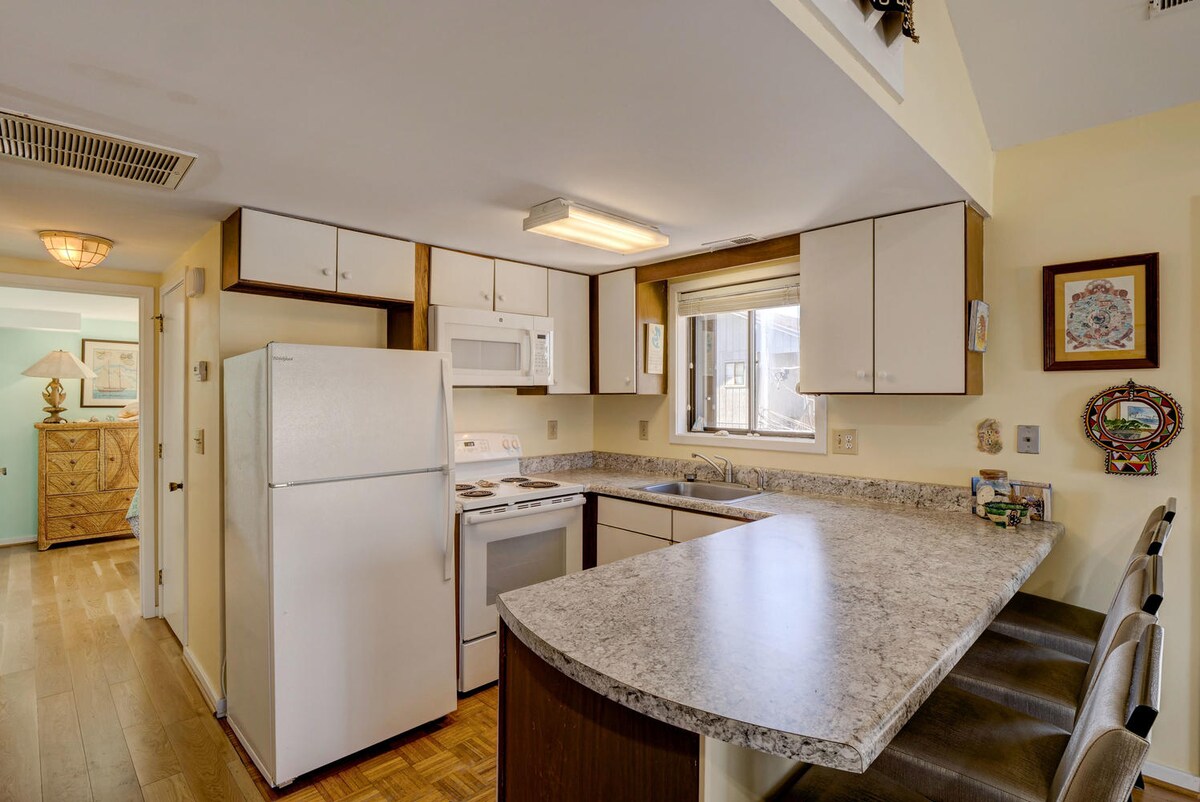 Leilighet ved havet bare noen skritt unna sanden på den uberørte nordenden av Wrightsville Beach i North Carolina. Denne enheten i første etasje på Shell Island Resort gir direkte tilgang til strandpromenaden, innendørs og utendørs bassenger, boblebad, full restaurant og utendørs bar. En utendørs gangvei forbinder leilighetens inngang til parkeringsplassen, så du trenger ikke å gå gjennom lobbyen eller bruke heiser, noe som gjør det mulig å holde avstand til hele oppholdet ditt.