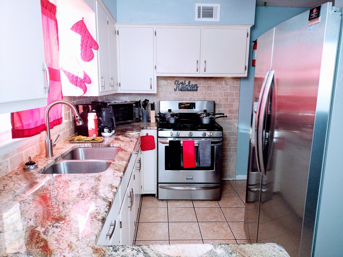 Velkommen til Bell Retreat! Denne leiligheten med tre soverom og 1,5 bad i hjertet av Kansas City er den perfekte blandingen av moderne stil og koselig sjarm. Det er bare en kort kjøretur til stadion, og du er bare noen minutter unna Plaza, Westport og sentrum, så du kan enkelt oppleve alt byen har å by på. Våkn opp til en fullt utstyrt kaffebar, tren i treningsstudioet, få gjort litt arbeid ved hjelp av vårt høyhastighets Google Fiber-internett, eller gå ut til ditt private underholdningsparadis med boblebad og utendørs spiseplass for seks personer. Kom og slapp av.