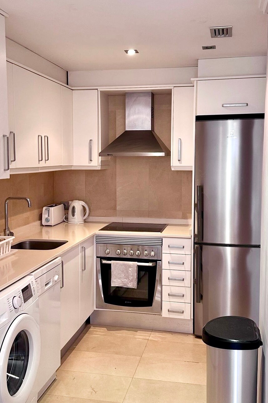 Vakker og koselig førsteklasses leilighet i luksusutvikling, i den beste sonen i Jávea. Leiligheten har et romslig soverom med en 1,50 dobbeltseng og direkte utgang til en stor terrasse. Romslig stue med utgang til terrassen, har en dobbeltseng i sovesofa, stor flerkanals TV og spisebord. Stuen fører til det åpne kjøkkenet, fullt utstyrt. Nytt bad med dusj Dørvakt og vakthold.