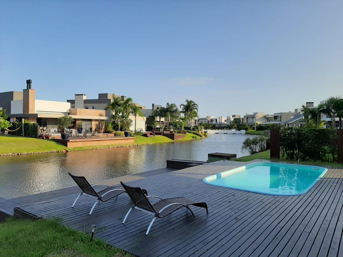 Stedet vårt er en invitasjon til å nyte med ro i sinnet og sikkerheten på en av de beste strendene på kysten av Rio Grande do Sul. Ligger i en inngjerdet luksusleilighet, med en fantastisk og helt ny infrastruktur, har våre 300 m2 4 suiter, en integrert stue med et fantastisk basseng ut mot leiligheten innsjøen.
