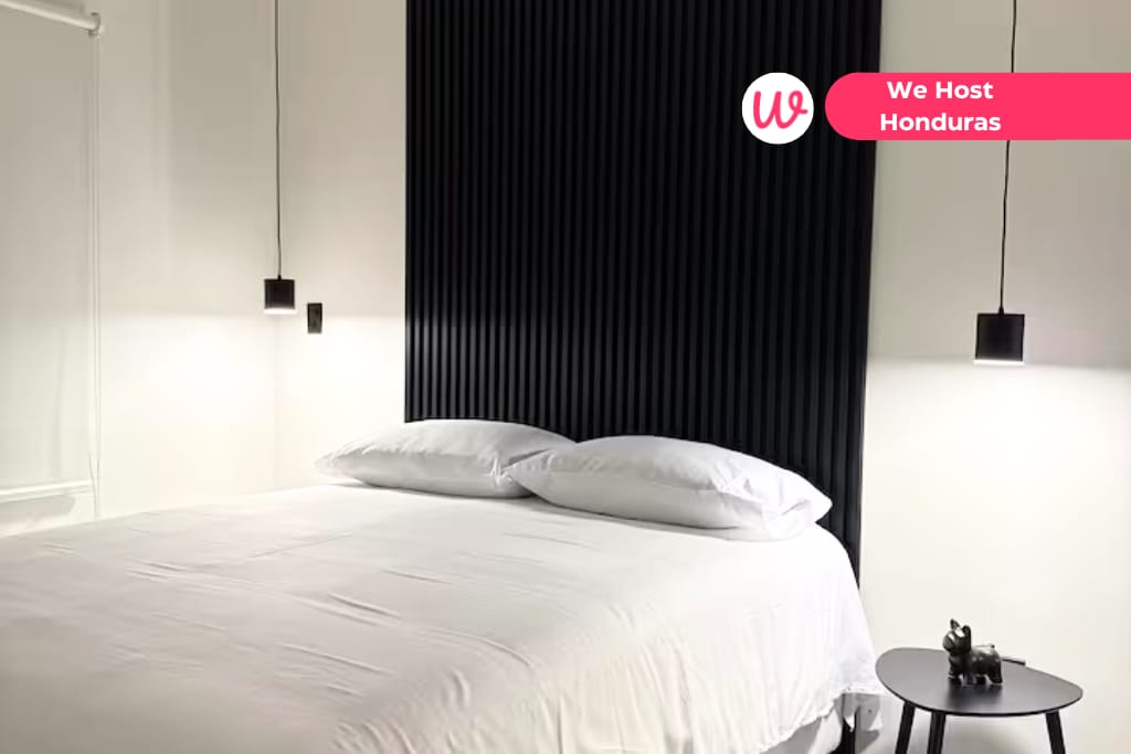 Encantador monoambiente,calido y moderno ideal para quienes buscan comodidad ,estilo y una excelente ubicacion(Frente a la UNAH), el cual cuenta con 1 cama matrimonial,tv,aire acondicionado,plancha,cocina totalmente equipada,torre de lavado ,baño moderno wi fi de alta velocidad , estacionamiento, te permite estar cerca de importantes comercios,restaurantes,bancos,supermercados y diversas zonas de interes de la ciudad. Ideal para Viajeros solitarios,parejas,o ejecutivos .
