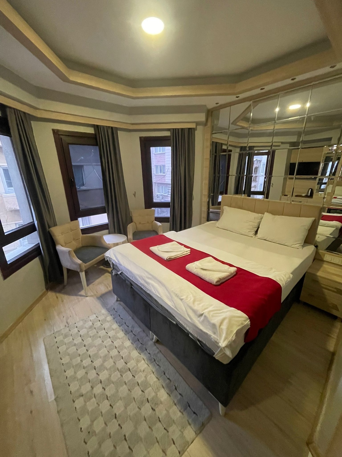 Leiligheten vår ligger i hjertet av det historiske og turistiske området i Istanbul. Leiligheten vår ligger 10–16 minutter unna til fots fra Den blå moskeen og Hagia Sophia. Du kan nå basilika-cisternen, Arasta-basaren, den historiske hippodromen, mosaikkmuseet, goodwill-cisternen, binbirdirek-cisternen, den lille Hagia Sophia-moskeen og mange andre historiske steder du må besøke ved å gå fra gaten vår på 10–15 minutter.