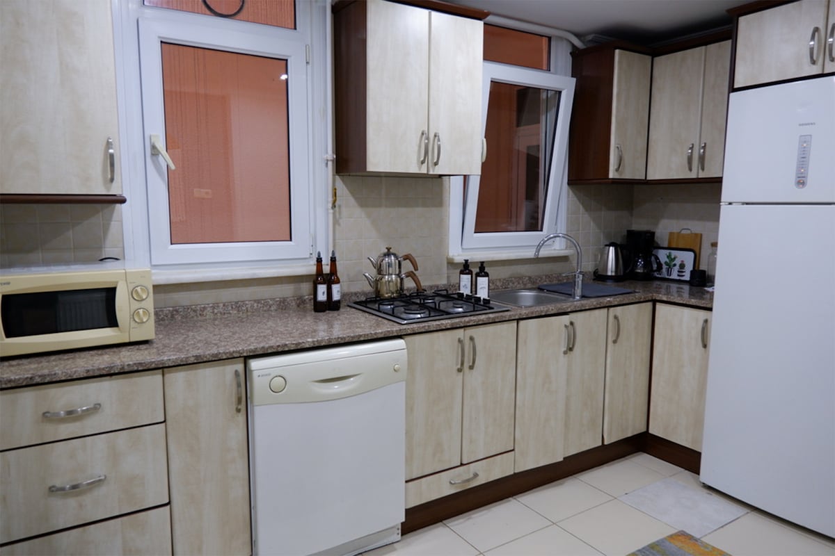 Når du ser på utleiestedene, kan du se tre av den samme leiligheten fordi vi brukte de samme møbelsettene da vi designet, og det er forskjeller i leilighetene. Prisene varierer fordi de er en pluss en og to pluss en, og beliggenheten er veldig sentral. T-bane, Marmaray, offentlig transport og kjøpesentre ligger innenfor gangavstand. Viktig merknad: Ingen kan gå inn i leiligheten bortsett fra det angitte antallet personer.