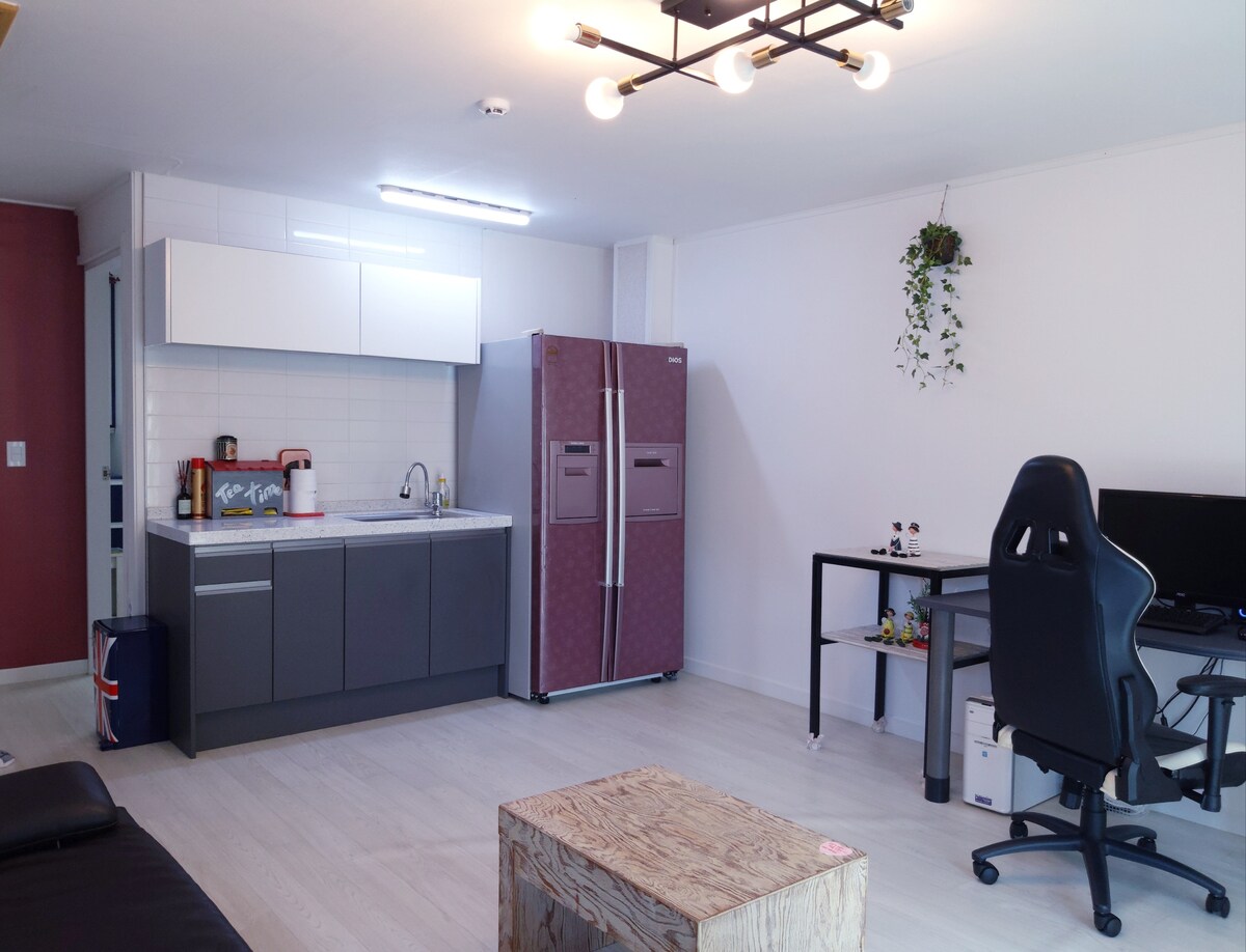 Nam-arie 458, som du bruker som et privat hus, ligger midt i en fiskelandsby, og det er et komfortabelt "hjem" hvor du kan helbrede nok selv om du ikke går ut og bare bor på overnattingsstedet. ! ️Grunnleggende reservasjon 1 soverom/2 queensize-senger/1 ~ 2 personer sengetøy/sofa/stue og gang/kjøkken 4 personer spisebord/bad/alle rom/spisestue (havutsikt) bord for 6 personer.️ 🗣 Annekset kan åpnes hvis du ber om det, uavhengig av antall personer. Ta den. Anneksgebyret er 100 000 won per natt. Ved reservasjon, hvis det er seks eller flere personer, vil verten sende deg en tekstmelding😃 🙏🏻Annekset er det eneste tilleggsbeløpet i boligen vår.😅 Gjør deg kjent med det og foreta en reservasjon.️ De to bildene er nederst i annekset. Dette er et soverom, en queensize-seng og et privat område med en sofa-TV. (Hvis du legger til et anneks, bruker du to soverom.) Det aktuelle antallet personer er 5 ~ 6 når du bestiller 1👌🏻 soverom (1 soverom) og 7 ~ 8 når du bruker ekstra anneks (2 soverom).
