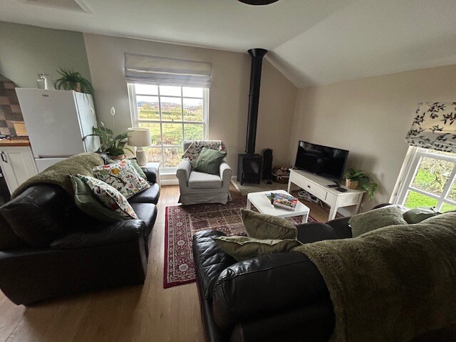 Close to local amenities Dog friendly PLEASE MAKE US AWARE AT THE TIME OF BOOKING, £35 charge. WiFi, Parking, its stripped beams, vaulted ceiling. Modern kitchen with dishwasher. Spacious luxurious bathroom with cubicle shower & double ended bath. Living area with leather sofas. TV. Bluetooth speaker It has has a king size bed. With option of a single bed PRIVATE PARKING ON PROPERTY