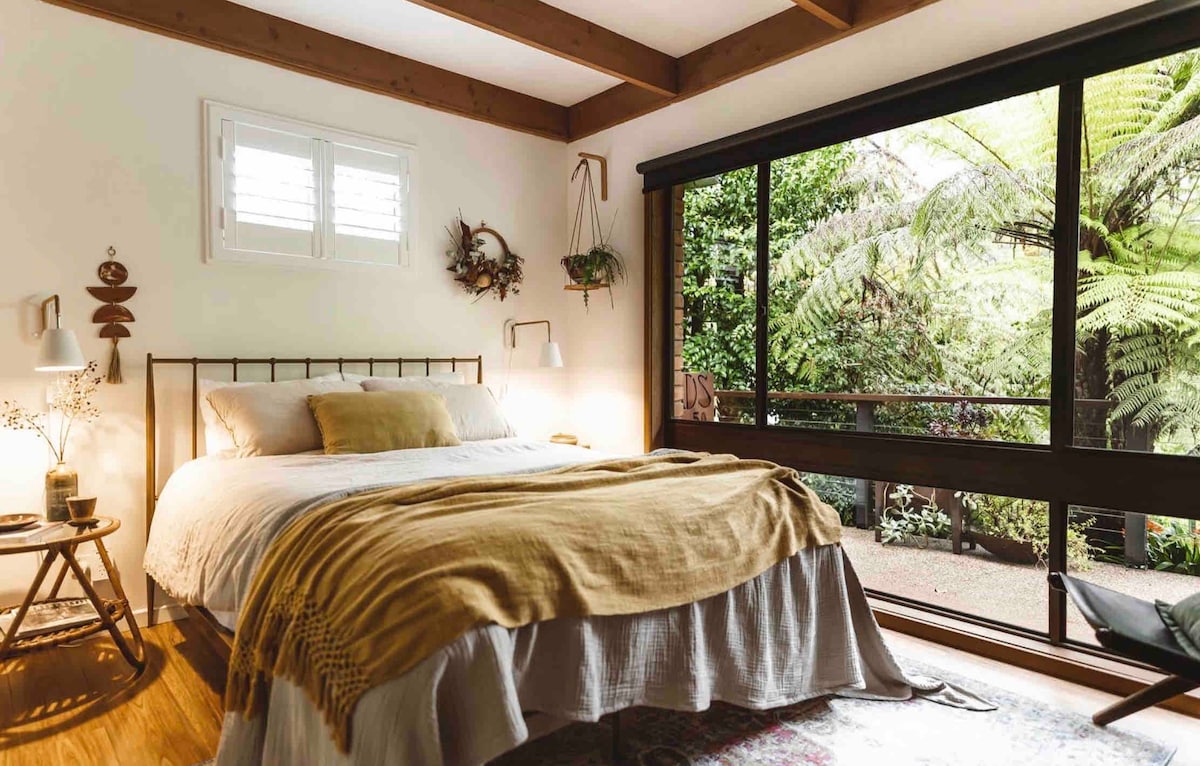 Gjemt bort i enden av en landevei og med tårnhøye bregner som svever over, er Gingers et magisk fjellferiested hvor alle har blitt tatt hensyn til. Du vil føle deg helt ivaretatt med alle våre unike detaljer. Med vakker utsikt over dalen og et stilig, koselig interiør i midten av århundret, er du virkelig innpakket i den robuste naturen i den fantastiske Upper Yarra Valley. Likevel er du bare 300 meter fra den ikoniske Yarra-elven og den sjarmerende bydelen Warburton. @gingersonthehill