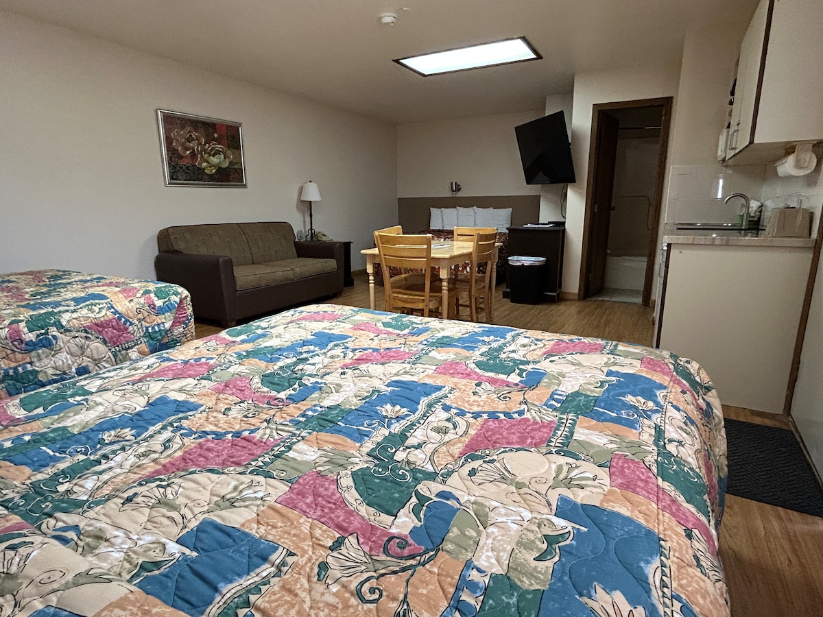 You will be surprised when you step in to this clean and inviting room. We are committed to making your stay comfortable and relaxing. Our hardworking staff has years of experience, and our excellent location is within walking distance of all the great things that Powell has to offer.