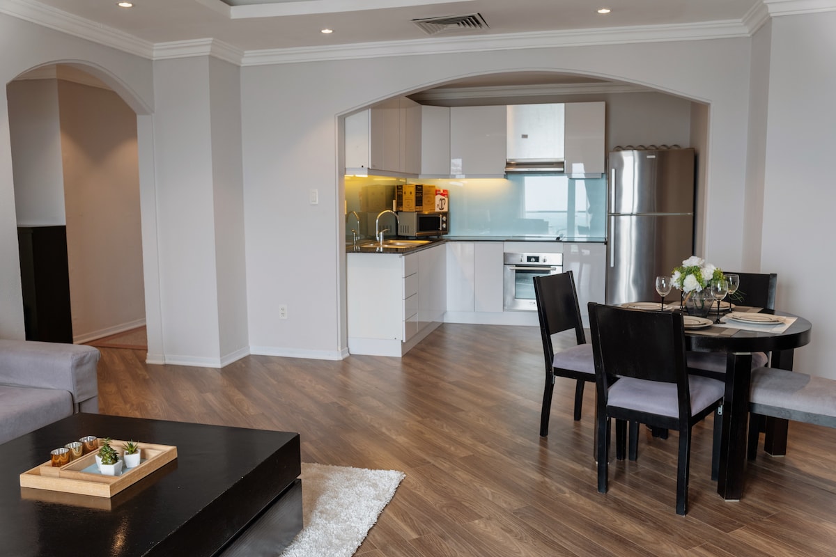 Hva er spesielt med denne leiligheten? - Beliggende midt i byen, rask flyplasstransport. - Leiligheten er fullt møblert og moderne apparater, egnet for familie eller vennegjeng. - Renhold er alltid garantert. - Rimelig pris for en privat og komfortabel leilighet. Leiligheten ligger i 3. etasje, bestående av områder: 1 soverom, 1 kjøkken og spisestue, 1 bad og 1 sitte- og arbeidsområde. Areal: 86 m² (~ 925,7 fot), med balkong med fin utsikt, tilbyr det ideelle avslapningsområdet.