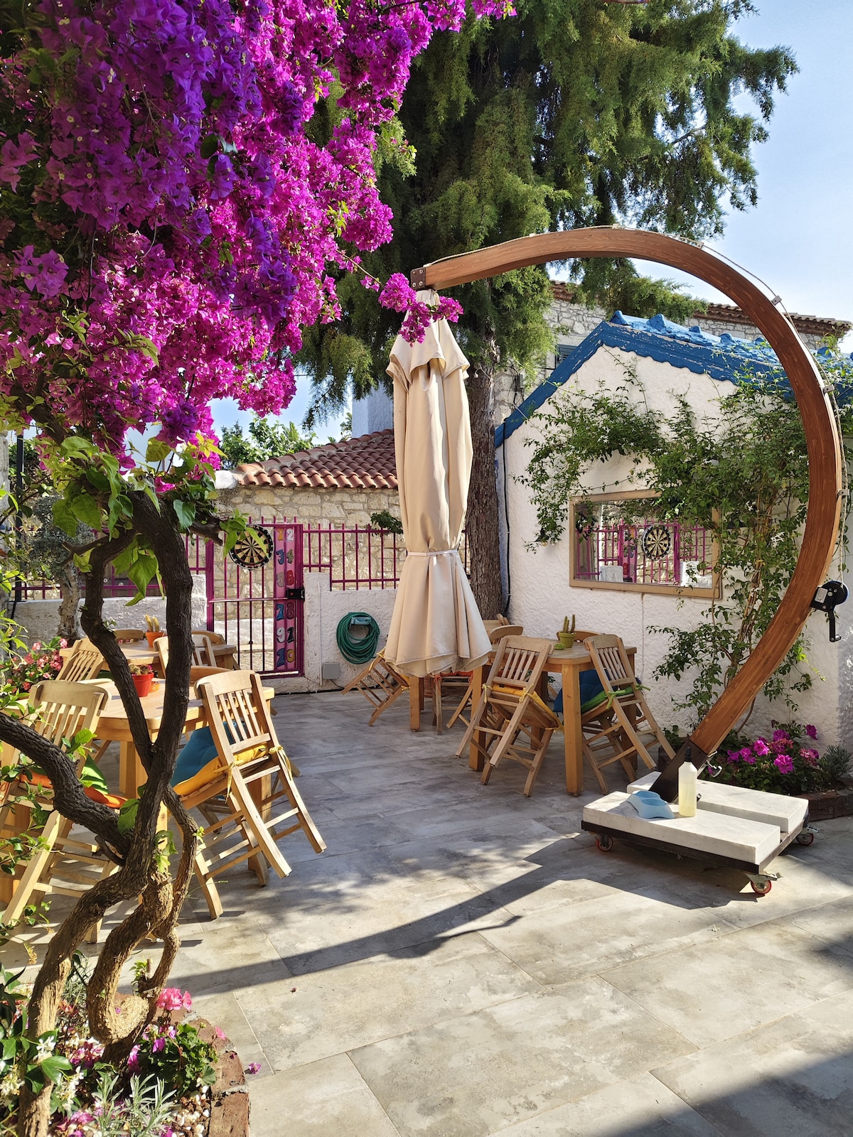 *VI HAR EN VANNTANK*. Vårt tre-roms steinhus med en hage midt i volumet, i Alacatı, innenfor gangavstand til alt, blant store trær. Huset vårt har peis, grill og to klimaanlegg. Rom som ikke er klimaanlegg, har vifter. Trådløst nettverk er tilgjengelig. Alacati ligger tre minutters gange fra den overfylte Yuruyus Yolu, midt i Hacimemis Carsisi, og fem minutter med bil fra surfestien. Det er en nedre gate i «Boop Alacati». Innsjekkingstiden vår er kl. 15.00. Avreisetidspunktet vårt er kl. 10.00.