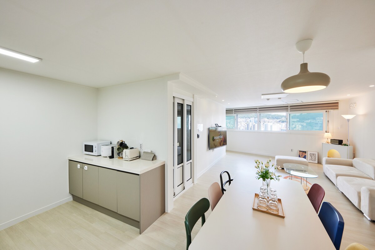 @stay8usanhang er et sted med utsikt over Busan havn, gjennomtenkt designet for å tilby komfort og inspirasjon. Hver detalj, fra musikk og duft til atmosfære, interiør og sengetøy, har blitt nøye utvalgt for å forbedre oppholdet ditt. - Skybro koblet til Busan stasjon (fem minutters gange). -1 Super kingsize-seng, 3 superenkelsenger. Badekar med havutsikt (klar for spa) - Fullt utstyrt / ideelt for familiereisende 50-tommers stor TV med Netflix, YouTube, OTT og kringkastingskanaler Bang & Olufsen-høyttalere