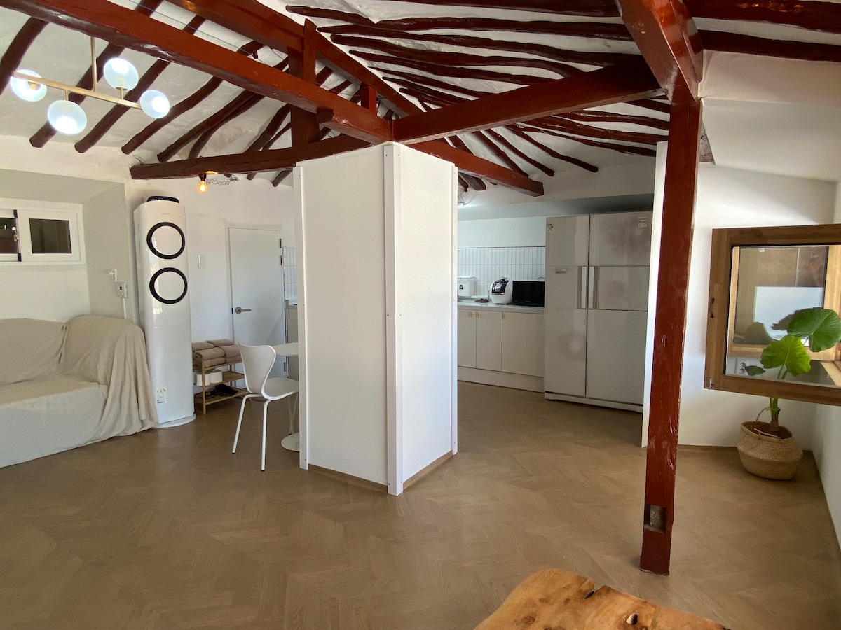 En liten fiskerlandsby med utsikt over Bangeukhavnen Kom for å helbrede deg selv ^^ * Retningen til Youngdeok fra Pohang. Det ligger 5 minutter med bil mellom Wolpo Beach og Hwajin Beach. Helen's Home er et populært sted for å se soloppgangen på østkysten, og du kan alltid nyte den komfortabelt fra gjesterommet året rundt. Bangsokhavnen, som ligger 5 minutters gange unna, er egnet for å nyte skinnskrubbing og fiske, og du kan smake på en rekke sjømat og fisk, inkludert blekksprut, sjøpølse og abalone, som har blitt fanget av havkvinner, og du kan også se fiskebåter som seiler inn og ut i daggry. Lag gode minner ved å gå en tur, bade eller fange ulike sjømat på stranden laget av steiner foran gjesterommet. Hwajin Beach og Wolpo Beach, som ligger 5 minutter med bil, har de beste forholdene for surfing og lek i vannet, og surfebrettutleie og -undervisning er alltid tilgjengelig. Trekk langs Haepparang-gaten med venner, eller sykle rundt i den hyggelige fiskelandsbyen for å lindre deg selv.