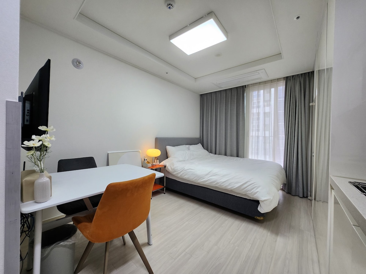 Det er et overnattingssted med både tilgjengelighet og ren stil, i nærheten av Unseo Station Airport Railroad fra Incheon lufthavn. Alle kjøkkenredskaper er tilberedt, noe som gir komfort for både lange og kortvarige opphold. Dette er en▶ kontaktløs direkte innsjekking. ▶ Vi sender deg et romnummer og innsjekkingsinstruksjoner på innsjekkingsdagen. Når du ankommer boligen, kan du gå inn på rommet direkte uten innsjekkingsprosedyrer. Utleiested Innsjekking kl.15.00 Utsjekking kl. 11.00 Sted- og fasilitetsguide Informasjon om plass og utstyr [soverom] Queen size-seng/smart-TV/OTT (personlig konto)/ Persienner/chiffongardiner/rundt bord/stol/gulv sengetøy (1 person) - betalt [kjøkken] Fryser • Kjøleskap/induksjon/mikrobølgeovn/kaffekanne/krus/sovesofa/stekepanne/kjøkkenutstyr/servise [bad] Sjampo/balsam/dusjsåpe/håndvask/fotmatte/tørketrommel Engangsartikler (tannkrem, tannbørster osv.) tilbys mot et gebyr i henhold til myndighetenes retningslinjer.