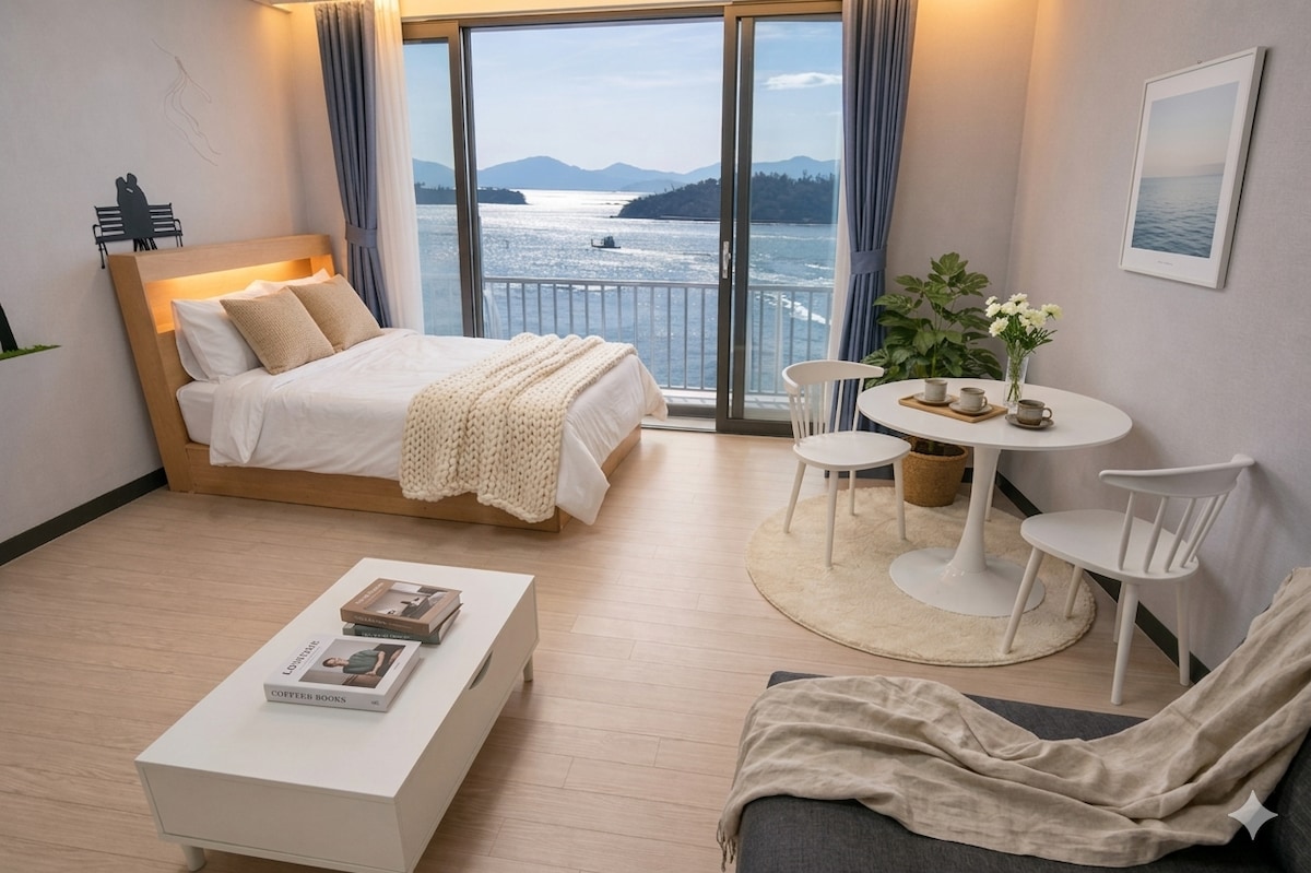 💧💧9124💧💧 💧💧1423💧💧 ✔ Sjarmerende terrasse ✔ Dette stedet byr på spesielle fordeler 🌊 Havet rett foran deg når du åpner øynene Overnatting med havutsikt, hvor du kan nyte Yeosu-havet selv fra sengen din Opplev øyeblikket der morgensolen og havet møtes. 🏡 Romslig og komfortabel 2-roms bolig Utformet for et komfortabelt opphold for familier, venner og par. Du kan merke at det er et romslig og komfortabelt sted. ☕ Funksjoner i terrassestil Nyte kaffe eller vin mens du ser på havet Få en følelse av turen din til Yeosu 🎁 Spesialtilbud for kunder som har bestilt 🚢 Én gratis cruise per person 🎨 Kupong på 30 % rabatt til Arte Museum (50 grupper) 🍓 Rabattkupong på jordbærmochi / nangman-pocha følger med 👉 Én overnatting fullfører turen din Fordeler med 📍 beliggenhet Den ligger i nærheten av de viktigste turistattraksjonene i Yeosu, så det er enkelt å komme seg rundt, og Det er et flott sted for å nyte restauranter, kaféer og sightseeing. 💡 Anbefalt for ✔ De som vil kose seg med havutsikt ✔ Par/reisende som leter etter et sjarmerende sted å bo ✔ De som leter etter et komfortabelt sted å bo med familie eller venner ✔ For de som ønsker valuta for pengene og fordeler