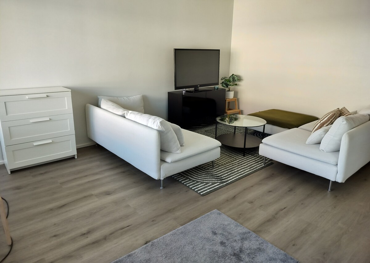 Lys leilighet med to soverom og balkong som går gjennom hele bygningen. Overnattingssted der alt er klart for deg. Det er ti minutters gange til sentrum og syv minutters gange til togstasjonen. Det innendørs svømmebassenget ligger på andre siden av veien. Prisen inkluderer sluttvask, sengetøy, håndklær og kaffe/te. En overbygd parkeringsplass er tilgjengelig for dem som kjører. Egen innsjekking fra kl. 15.00. Du finner nøkkelen i nøkkelboksen foran huset. Soverommet har en dobbeltseng på 160 cm (for to personer), og stuen har en sovesofa på 140 cm med uttrekkbar madrass (for én til to personer). Leiligheten egner seg for 1–4 personer.