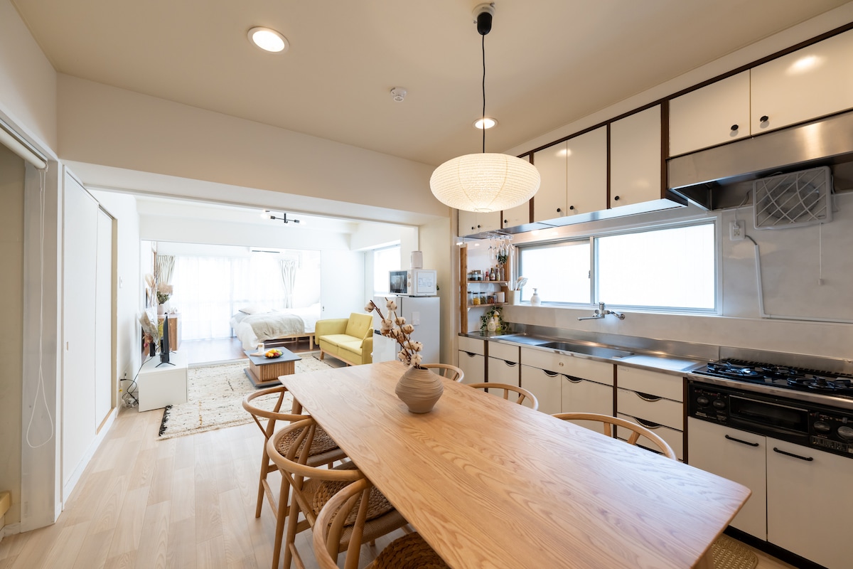 Slapp av i den romslige stuen vår, som er møblert med naturlige, miljøvennlige materialer. Privat utleie inkluderer stuen og to soverom – perfekt for opptil syv gjester. Bare 15 minutter med tog til Haneda lufthavn, Shinagawa eller Yokohama – ideelt for å reise over hele Japan! Bare 30 sekunder fra leiligheten: • døgnåpen nærbutikk • myntvaskeri • Treningsrom Flott for lang opphold. Ingen heis. Tilgang via brede, overbygde utetrapper.