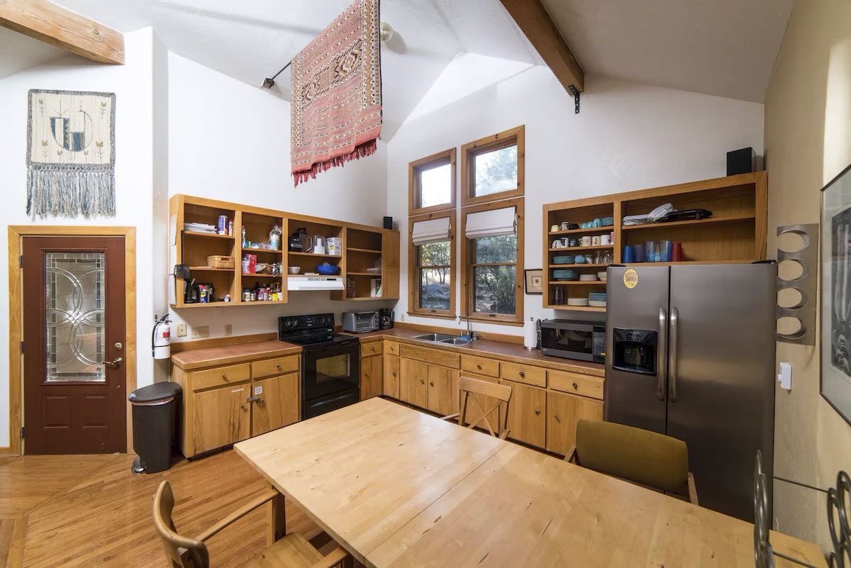Dette nye hjemmet ligger innenfor parkportene en kort kjøretur til Yosemite Valley, en parkreservasjon er ikke nødvendig. Dette elegante hjemmet har hvellingshøyde, ekspansive vinduer som gir mye naturlig lys og en åpen planløsning med eksklusive apparater og finish. Hjemmet er fylt med treverk som er spesiallaget fra dette stedet, fra skapene til møblene, laget spesielt for dette hjemmet. Det ligger i Yosemite vest, ved siden av flere kilometer med skog, og er et flott tilskudd til Yosemite-besøket d