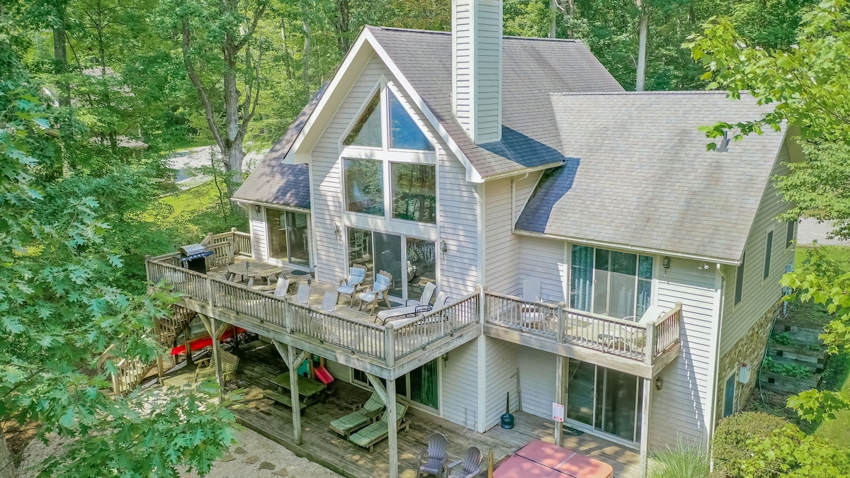 Velkommen til Woodland Wish! Denne eksklusive hytta ligger bare noen minutter fra Deep Creek Lake Park, og tilbyr uendelig moro: boblebad, tønnebadstue, pickleballbane, minigolf, bueskyting, arkade, basseng og pokerbord, air hockey, shuffleboard og mer. Omgitt av skog med sesongbasert fjellutsikt, men likevel i nærheten av Wisp Resort, Swallow Falls, Adventure Sports Center, tur, zipline og mer. Enten du slapper av eller leker, er Woodland Wish det perfekte feriestedet året rundt for å slappe av, koble til og skape uforglemmelige minner.