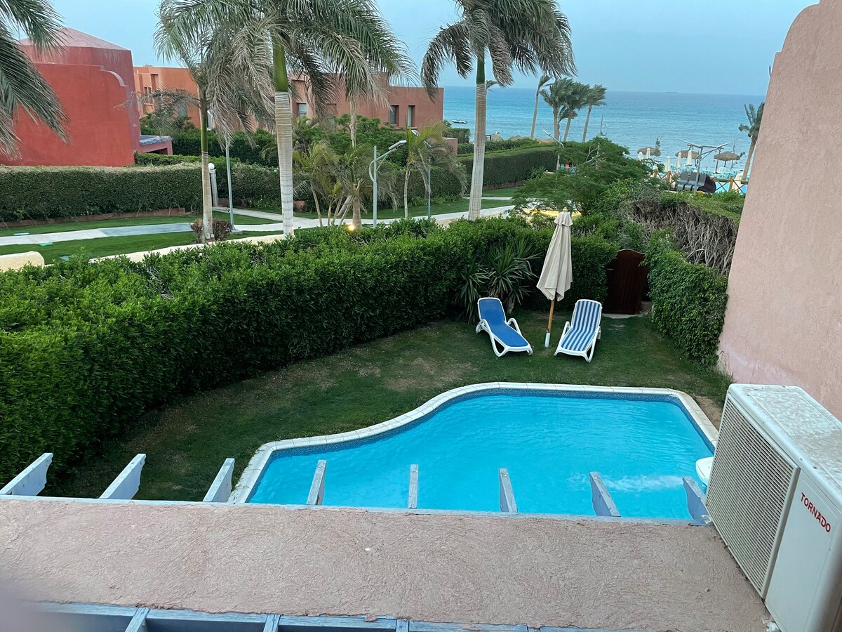 Penthouse-hytte med utsikt over sjø og basseng i Telal Sokhna