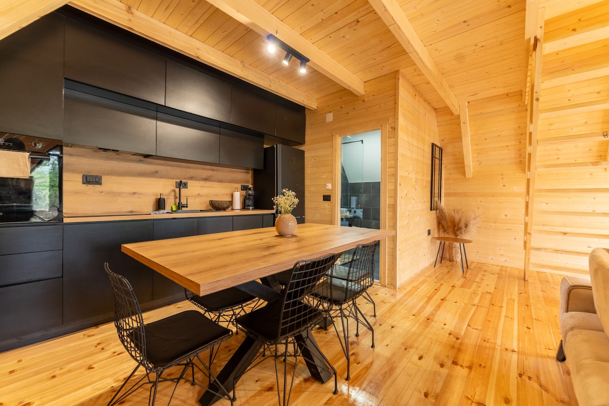 Kom deg bort til den luksuriøse villaen vår i Žabljak, som ligger i Durmitor nasjonalpark, bare to km fra sentrum og fem km fra Svartinnsjøen. Nyt den fredelige utsikten, et fullt utstyrt kjøkken, bad med gulvvarme, to koselige soverom og store TV-skjermer med Netflix og trådløst nettverk. Slapp av utendørs med grillmuligheter, lekeområder for barn og naturskjønne stier i nærheten. Tilfluktsstedet vårt tilbyr spennende aktiviteter som sykling, quad-sykling, hesteridning, fotturer og rafting. Perfekt for et fredelig og uforglemmelig opphold.