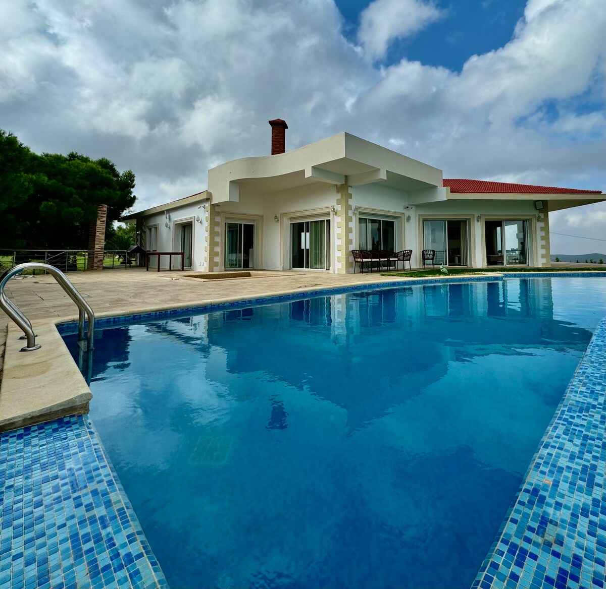 Villaen vår ligger 60 km fra Tunis, i El Fahs, omgitt av natur. Den byr på en fantastisk utsikt over fjellet og er omgitt av grøntområder og ro. Villaen har en stor terrasse som er ideell for å slappe av og nyte landskapet, et stort basseng for å kjøle seg ned og en peis som skaper en koselig atmosfære for å tilbringe kvalitetstid med familie eller venner.