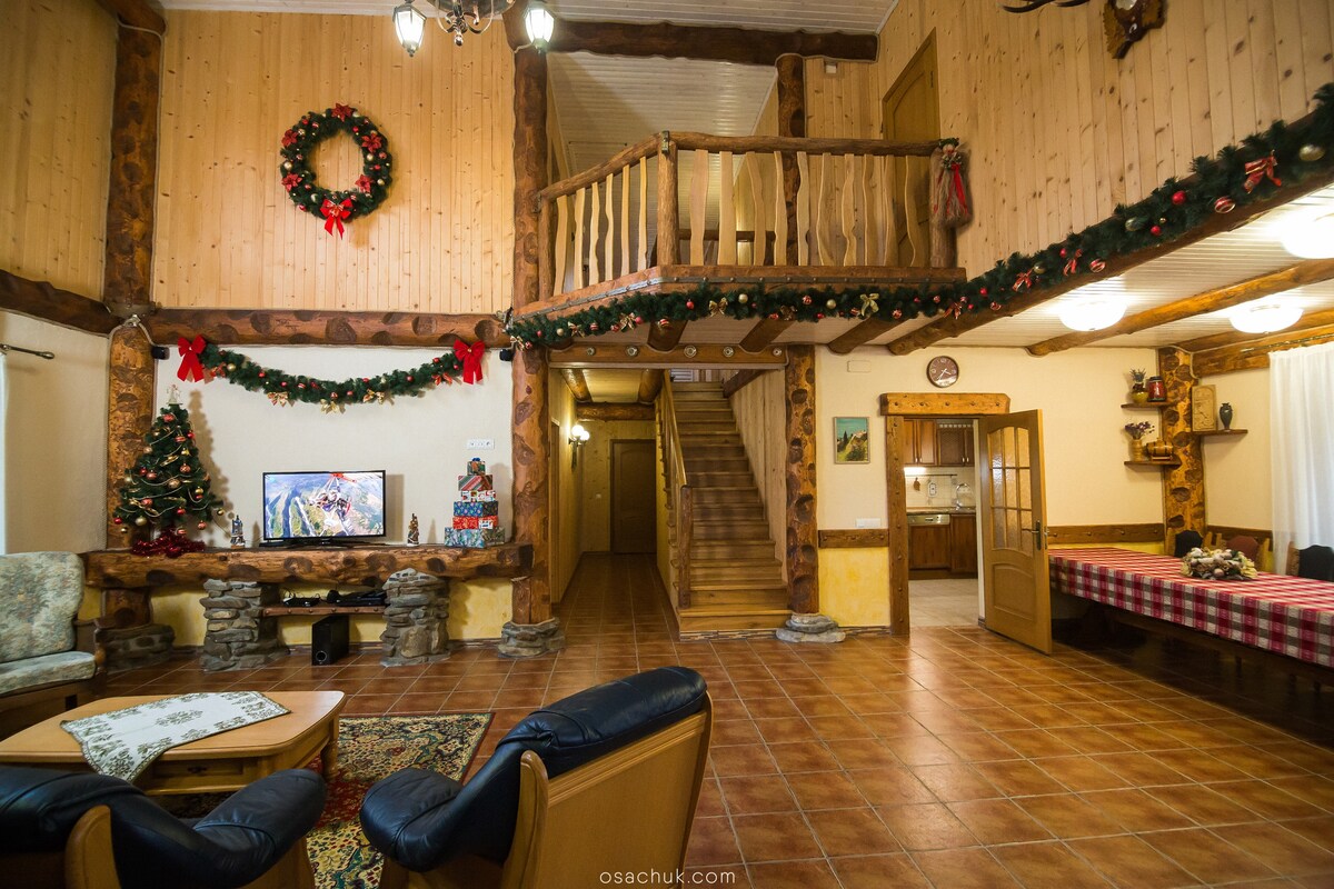 Et koselig lite hus for deg som ønsker å unnslippe storbyen og fordype deg i den uberørte naturen i Karpatene. Luzhky er den siste landsbyen før fjellryggen. I nærheten flyter den krystallklare fjellelven Luzhanka, hvor du kan svømme eller til og med prøve å fange ørret. Her kan du nyte naturen, gå gjennom uberørte skoger, lytte til fuglesang, plukke villbær og sopp. Om vinteren kan du beundre den ferske snøen og varmen fra peisen.