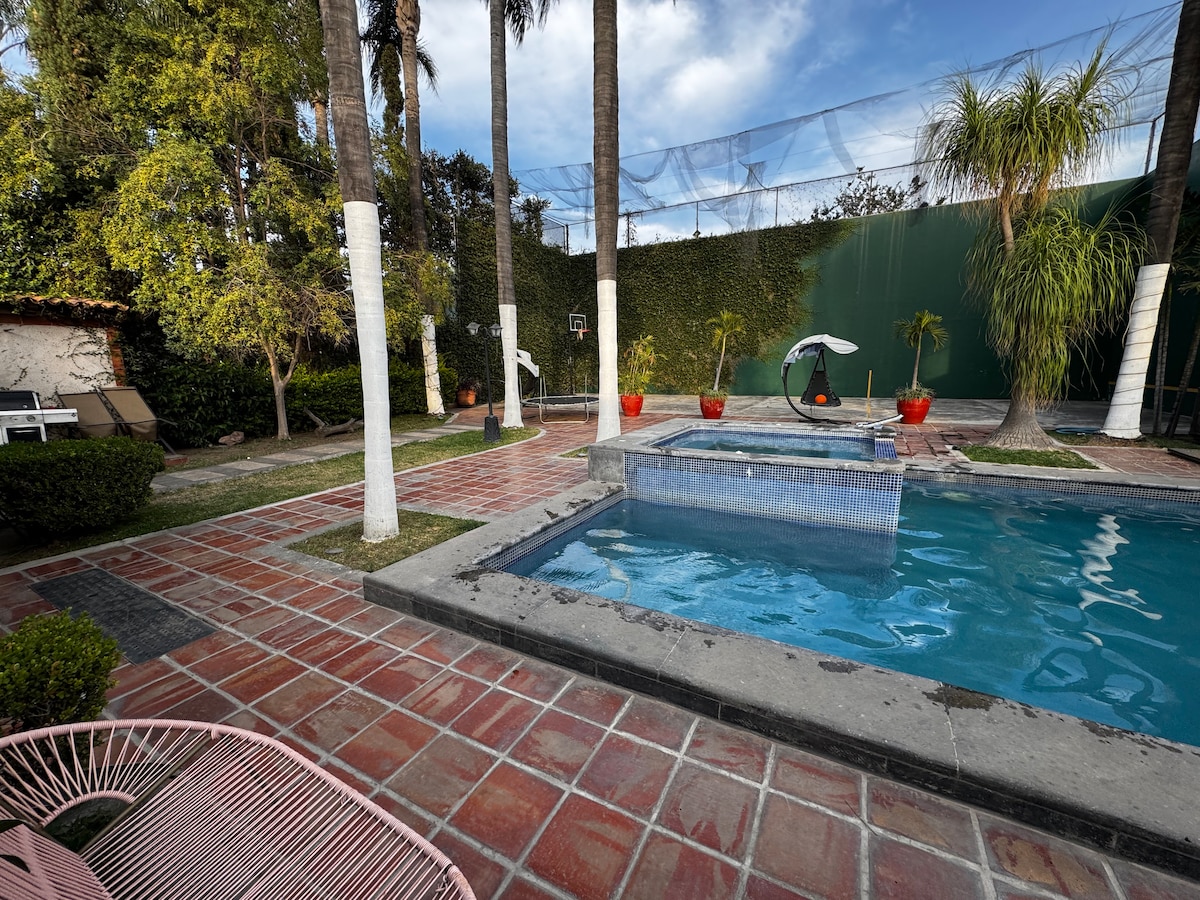 Hacienda-type hus Med peis, et veldig stort hageområde, hvor du vil føle freden i naturen, og du kan nyte ettermiddager med barna og kjæledyrene dine eller grille med venner. og barna kan leke og løpe Vi har også et basseng på 5 x 4 og solsenger Wi-Fi, balkong med hengekøye for å nyte utsikten Ideelt for å koble av fra byen. hvis du er sliten eller stresset, er dette det rette stedet Vi er i nærheten av ravinen og dyrehagen i Guadalajara