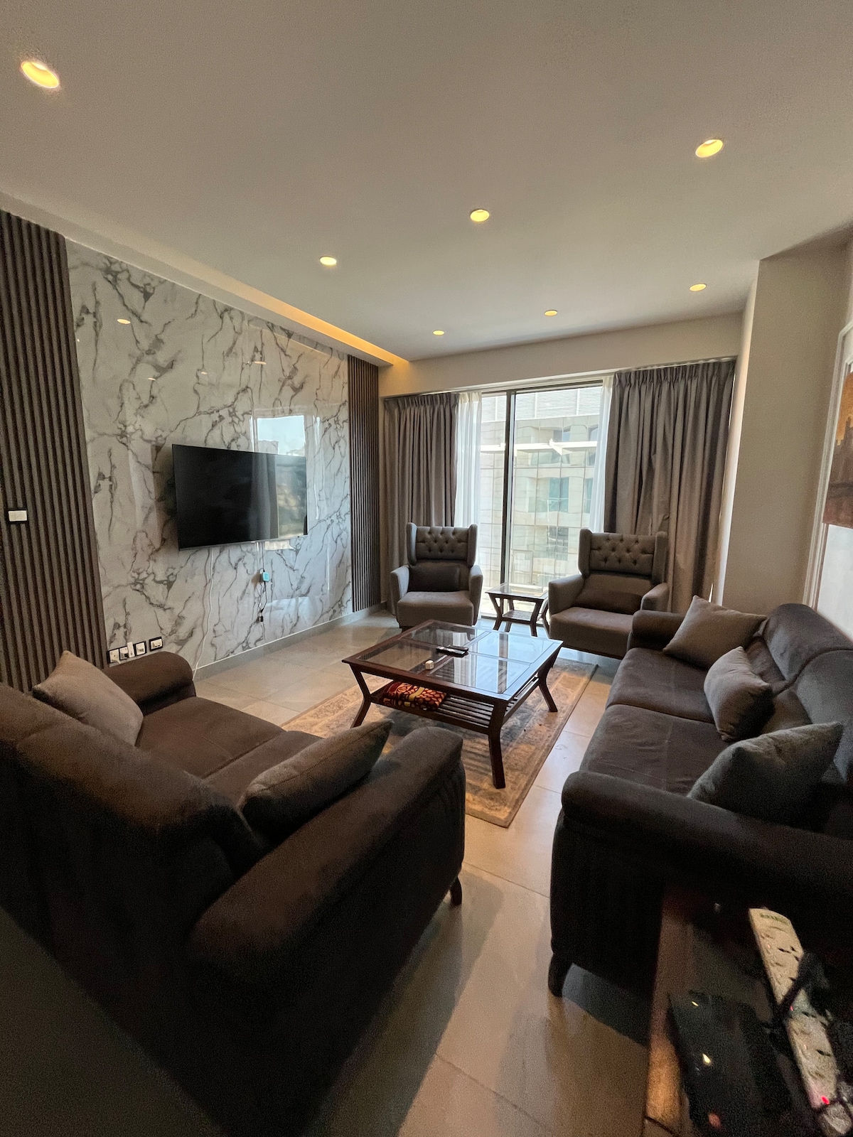 I hjertet av amman i Abdalli-området En stille og fredelig 146 meter lang leilighet med to hovedsoverom og totalt tre bad med en romslig stue og spiseplass, fullt møblert med alt utstyr. Leiligheten har fire balkonger, to er stille og private, og to har direkte utsikt over kjøpesenteret Abdalli . Tilgang til parkeringsplass og svømmebasseng og treningsområde 24 timers sikkerhet. Etter at reservasjonen er bekreftet, må du kanskje gi oss en kopi av gjestenes legitimasjon (pass eller nasjonal legitimasjon). Takk