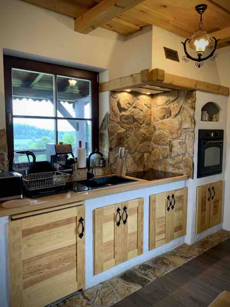 Wzgórza pełne jeleni, które nierzadko możesz obserwować wprost ze swojej sypialni lub tarasu. Bardzo nowoczesne, wypełnione przepięknymi i starannie wyselekcjonowanymi meblami z drewna egzotycznego, wyposażone w wysokiej jakości sprzęt oraz bardzo komfortowe łóżka - wnętrze. Na balkonie obok mebli i leżaków z ekskluzywnego drewna tekowego - sauna fińska. Zewnętrzny taras prowadzi Was wprost do balii ogrodowej z podgrzewaną wodą. Leżąc w łóżku lub wannie, możecie zachwycać się widokiem na góry.