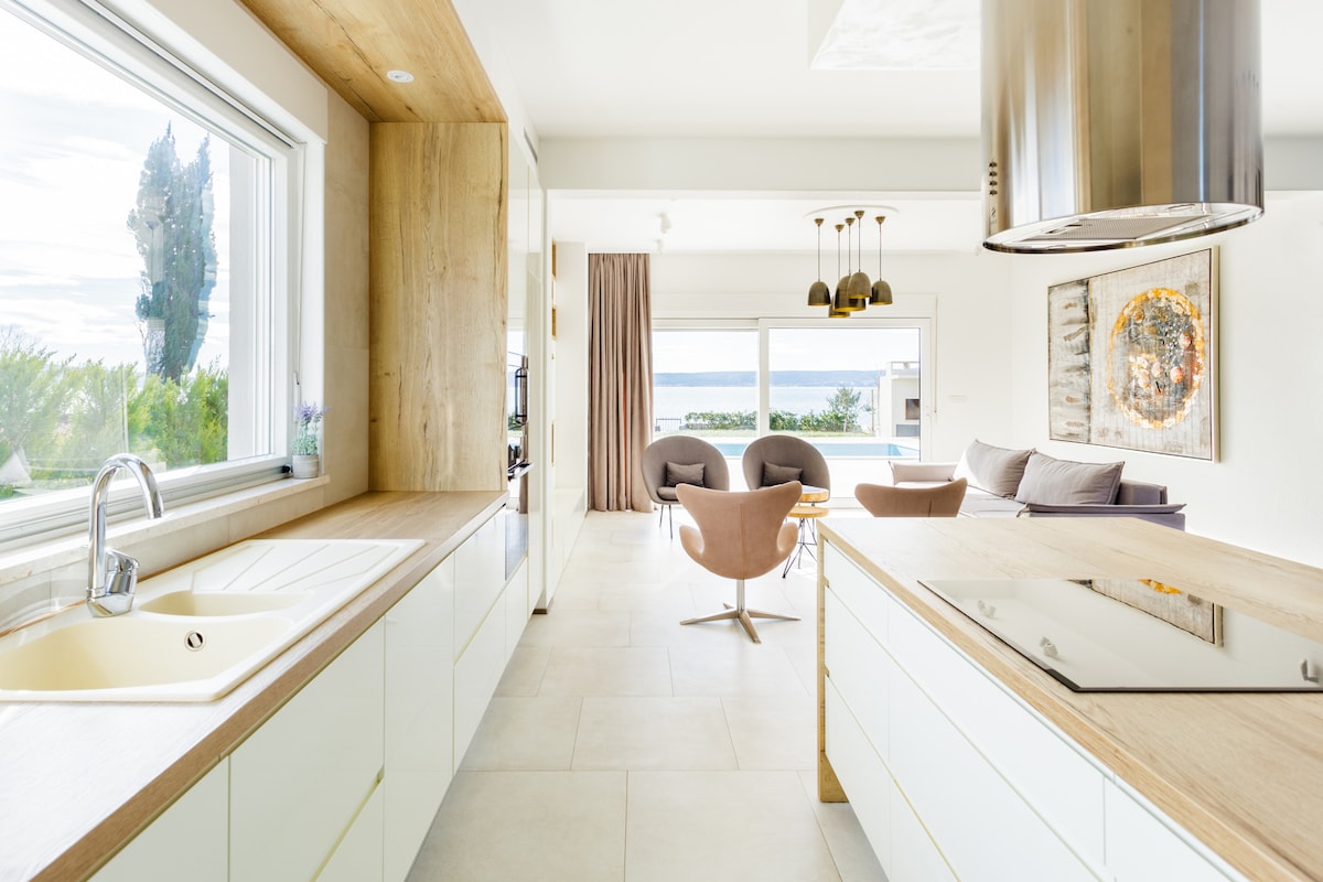 Den magiske drikken for sjel, sinn og kropp. Livets eliksir. Det er slik du føler deg på eiendommen vår. Hele eiendommen er bare for ett par. Det føles som om du er helt borte fra alt, fra problemer, stress og mennesker. Utendørs evighetsbasseng og naturskjønn havutsikt ved Marina Bay og øyer som du kan nyte med fullstendig privatliv, vil gi deg uforglemmelig glede. Det lille huset vårt har alt du trenger for ferien din, og det vil oppmuntre romantikken og sjelen din.