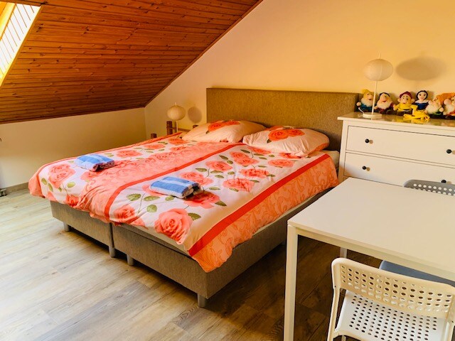 Rom Margriet ligger i første etasje i en frittstående villa i et rolig villastrøk nær stranden (1 km). Det er et romslig soverom med to enkeltsenger og én sovesofa (90 x 200 cm) Rommet har et sete, og det er et felles bad med toalett, dusj og vask i gangen. Paula liker å forkæle alle gjestene sine med frokost! I tillegg er hun til tjeneste for deg med alle spørsmålene dine. Stedet hennes passer for par, venner og familier (med barn).