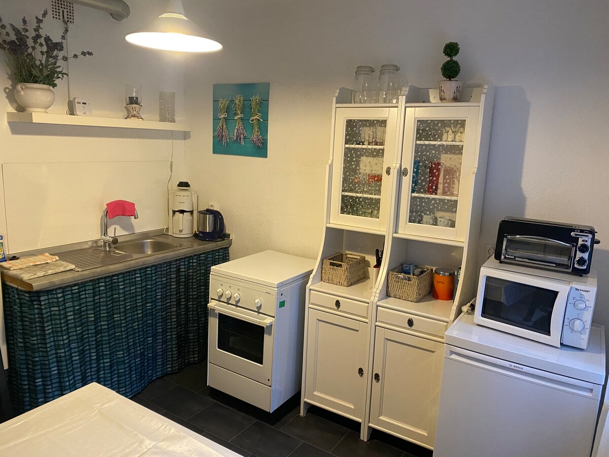Vi leier en møblert gjesteleilighet i et eget hus i første etasje på eiendommen vår. Hagen er privat. Leiligheten ligger nær sjøen, hvor det er en flott lekeplass og i nærheten av Berlin. Det er god tilgang med kollektivtransport.