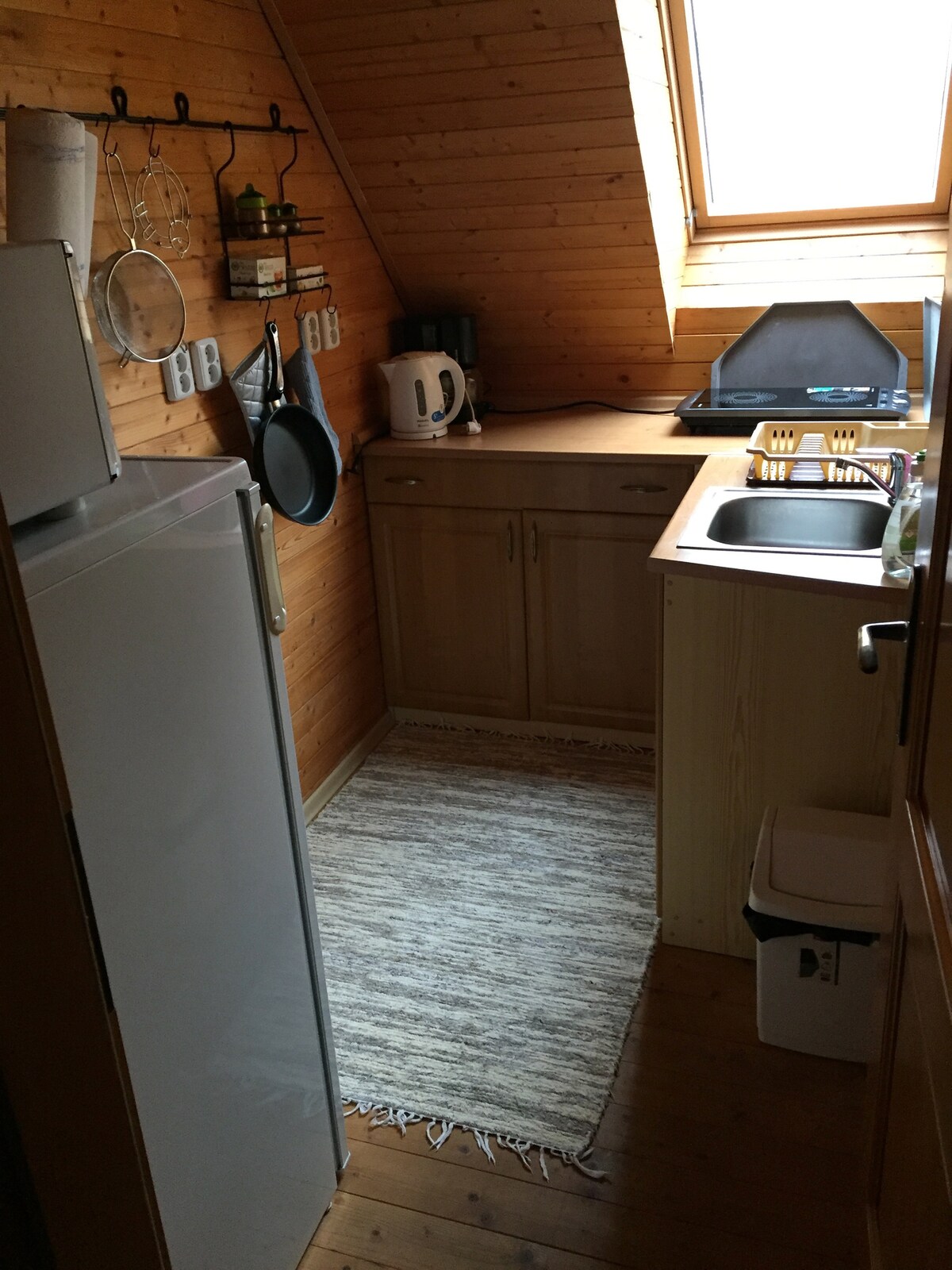 Vi tilbyr overnatting på loftet i tømmerhytta, som består av to soverom, kjøkken og bad. Begge soverommene har dobbeltseng og sovesofa. I kjelleren er det en saltgrotte som er åpen for publikum.