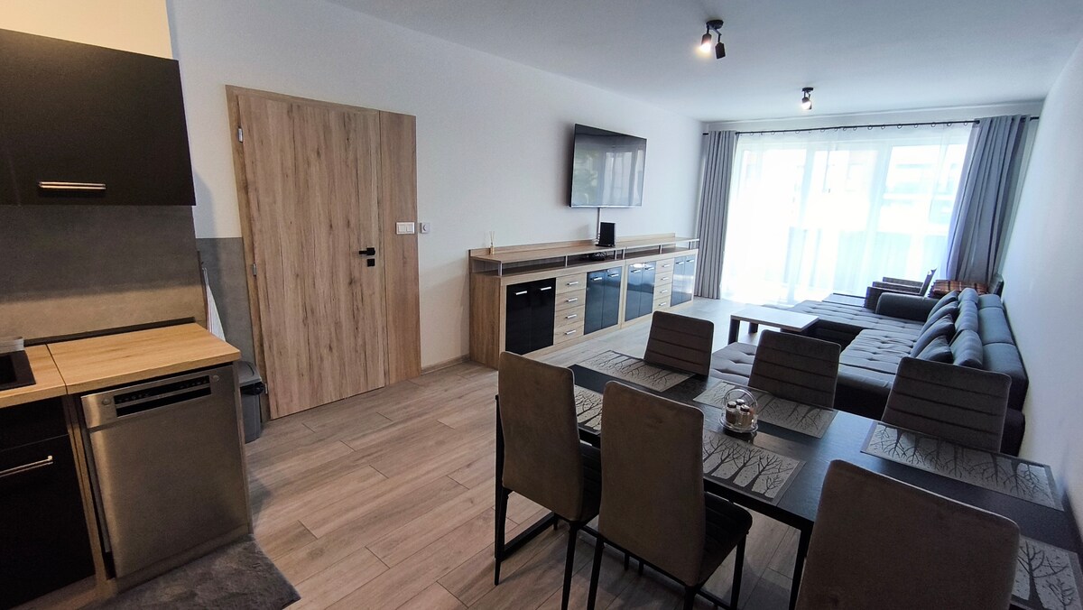 Vakker ny leilighet i sentrum av Žilina, leiligheten er på 55 kvm, har en stor stue med kjøkken, romslig bad og et koselig soverom. Leiligheten har en rekke ekstra ting og får det til å føles som et veldig koselig hjem. Leiligheten ligger i sentrum av Žilina, to minutters gange fra buss- og togstasjonen, fem minutters gange fra sentrum. 50 meter fra leiligheten er det dagligvarer, gjestfrihet og andre virksomheter.