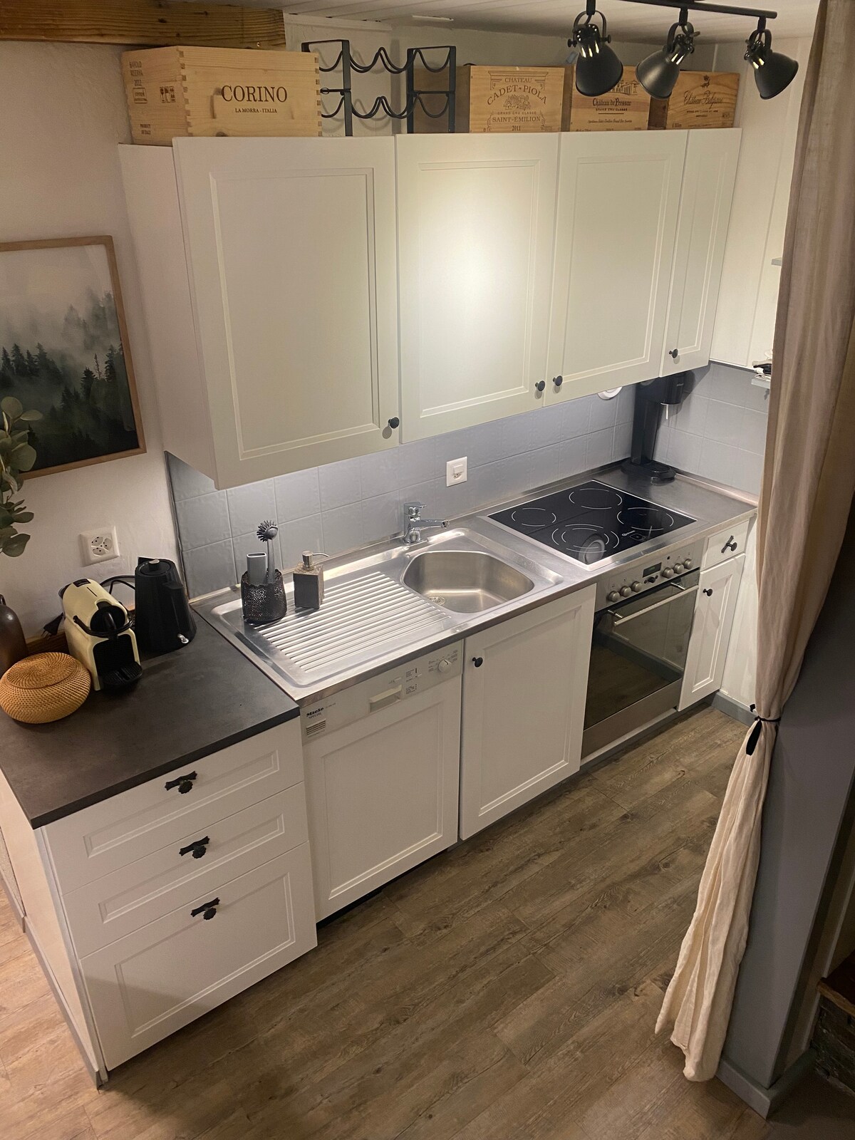 Smakfullt møblert, lys leilighet, balkong med fantastisk utsikt: Det ligger i fjerde etasje i et modernisert ensemble. Det er en større stue med balkong og et åpent, moderne og veldig godt utstyrt kjøkken, spisebord samt et mindre soverom med dobbeltseng og skap. Ekstra skapplass i gang. Også: Et lite bad med badekar og separat toalett. Låsbart skiskap i inngangen.