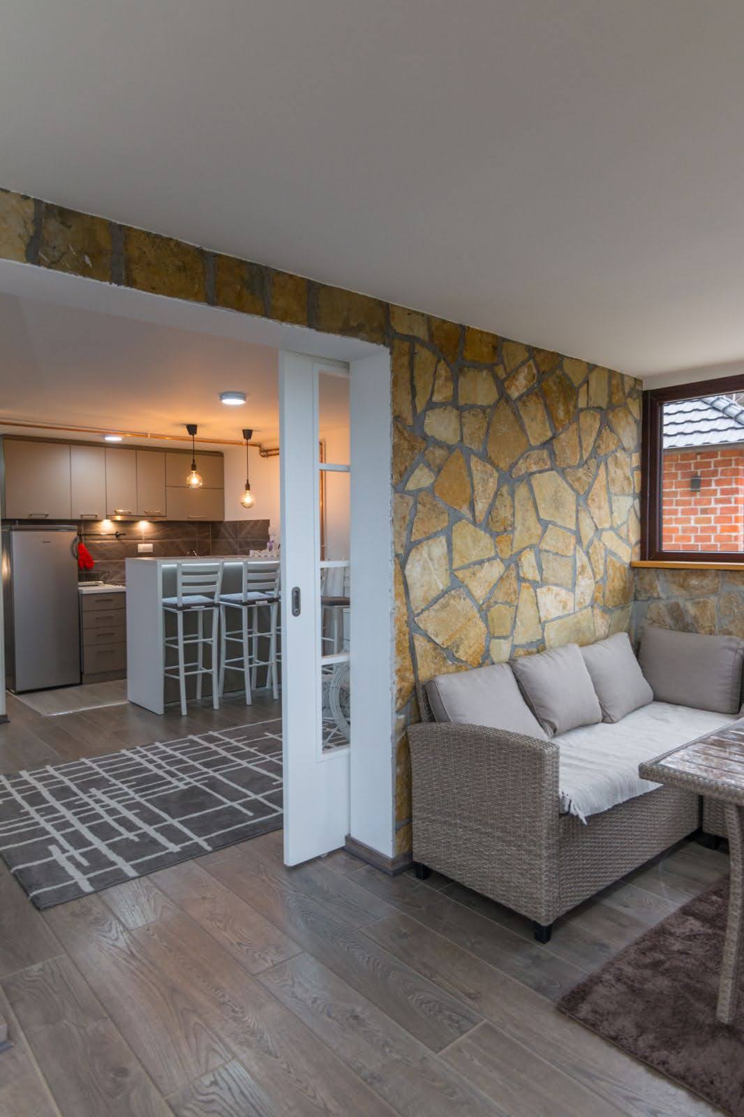 Dette unike stedet er et perfekt sted for naturelskere. Den ligger i en vakker eikeskog, rett ved siden av en liten elv, og det er stille. Huset er bygget med alle naturlige materialer smakfullt og med omhu for detaljer. Den er møblert med helt nye komfortable senger, bad, fullt utstyrt kjøkken, innendørs peis. Det finnes en liten lekeplass for våre yngste gjester, samt et lite naturlig basseng laget av elven. Hvis du liker å lage grillmat, finnes det utendørs grillplass.