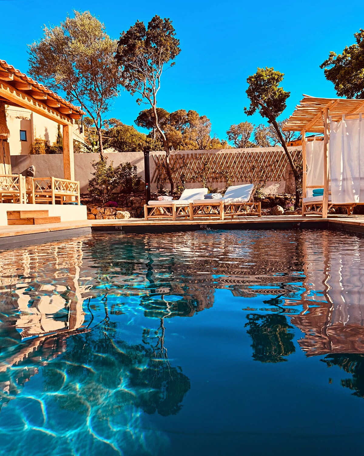 Magnifique caseddu tout équipé, sans vis a vis avec piscine privée en pierre de bali, grande terrasse et pool house, situé en plein milieu du maquis. Piscine chauffée hors saison d’été Idéal pour un couple et un bébé Tous les équipements pour un bébé sont disponibles sur demande. Lit parapluie, baignoire , chaise haute. C’est une bergerie neuve réalisée avec toute mon énergie et mon cœur Nous avons hâte de vous la faire découvrir et de vous accueillir. À très vite Steve et Eva