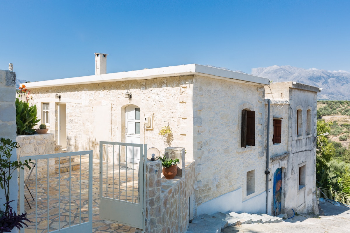 Renovert tradisjonelt hus laget av stein og tre, i landsbyen Paleoloutra, i det sørlige Rethymno, 22 km fra byen og 11 km fra de vakre strendene i Plakias. Det består av en første etasje, en etasje med klimaanlegg og en stor gårdsplass med et spisebord under vinranken, solsenger, en liten hage med aromatiske planter og en fantastisk utsikt over fjellene. Stedet er ideelt for fjernarbeid, for utflukter til strender og innlandet og for turer i naturen som omgir landsbyen (europeisk sti E4).