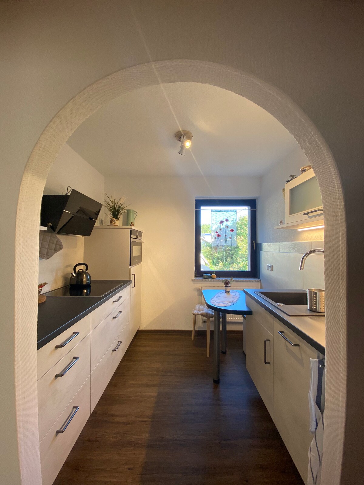 Aktiv ferie og/eller arbeid i en god atmosfære. I kuskenes hus tilbyr vi historisk stil med dagens komfort. En romslig stue og spisestue inviterer deg til å slappe av etter en aktiv dag. To soverom med utsikt over landskapet. Ett av dem har «hjemmekontor»-funksjonalitet. Et godt utstyrt kjøkken og et lyst bad fullfører ferien din. Egen gjestegarasje. Kuskenes hus ligger rett ved elven Zschopau og ved sykkel- og turstien. Fem minutters gange til byen eller stasjonen.