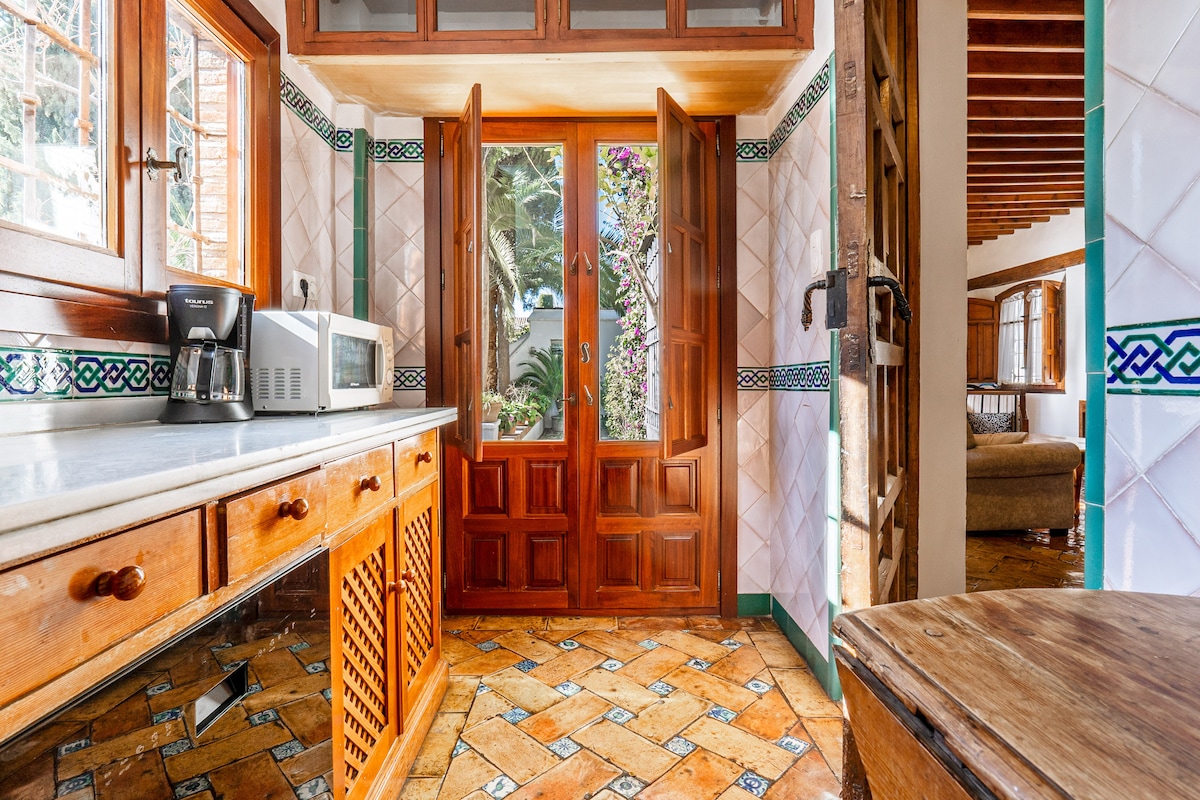 Hyggelig leilighet, som ligger i hjertet av Albaicín, hvor mange av de opprinnelige områdene og materialene er bevart. Leiligheten har kapasitet for 4 personer, og består av et soverom, kjøkken, stue, bad, toalett og uteplass. GRATIS PARKERING er inkludert, og ligger bare 3 minutters gange fra leiligheten. Den ligger i en rolig og stille gate, noen få meter fra Plaza Larga og den berømte utsiktspunktet San Nicolás, hvor du kan nyte en fantastisk utsikt over Alhambra