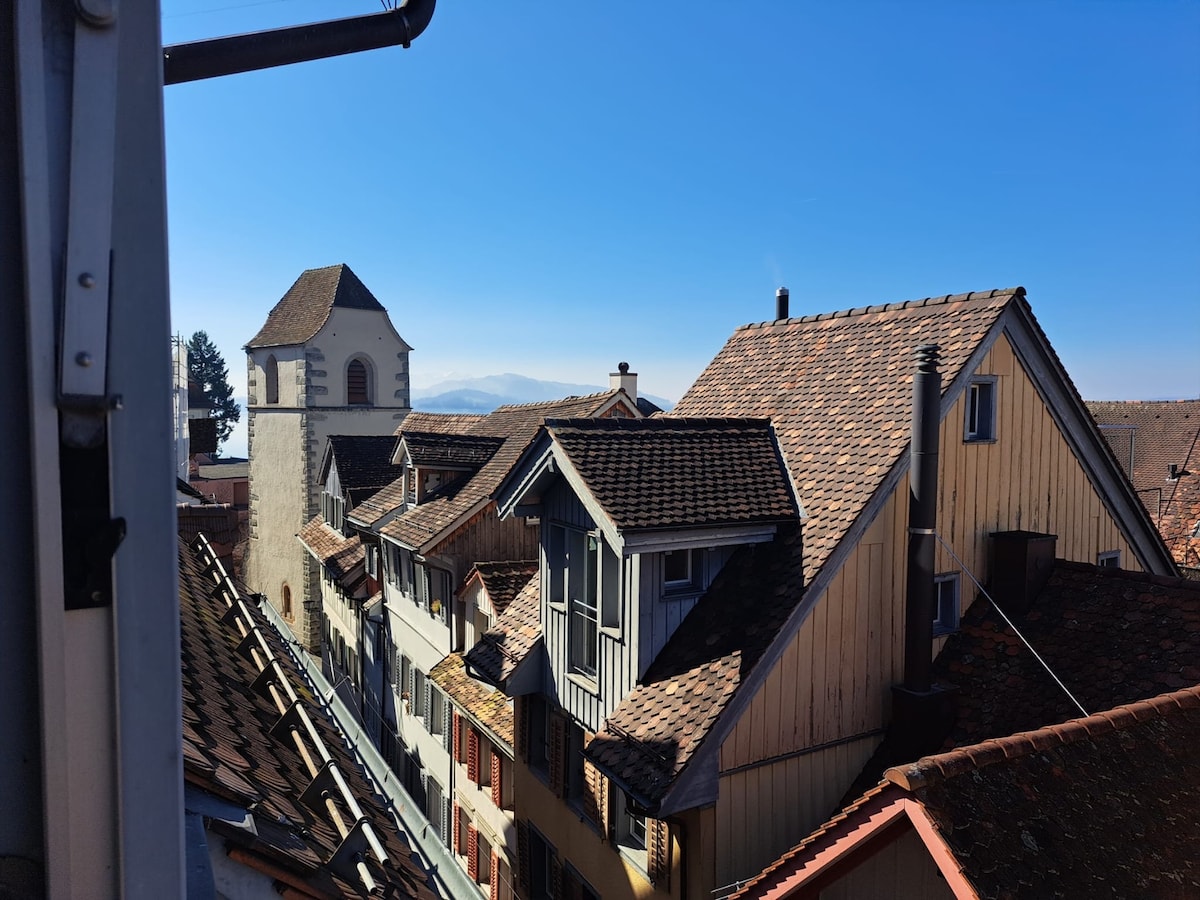 Vår lyse og rolige loftsleilighet med ett soverom ligger bare ti minutters gange fra Zug jernbanestasjon. Du kan nå Zürich og Luzern på 30 minutter. Viktig: Røykfri leilighet ligger i tredje Det er ingen heis! Vår rolige og lyse loftsleilighet med ett soverom ligger bare ti minutter unna (gangavstand) Zugs hovedbanestasjon. Du kan nå både Zürich og Luzern på mindre enn 30 minutter. Vær oppmerksom på at leiligheten ligger i tredje etasje. Det er ingen heis!