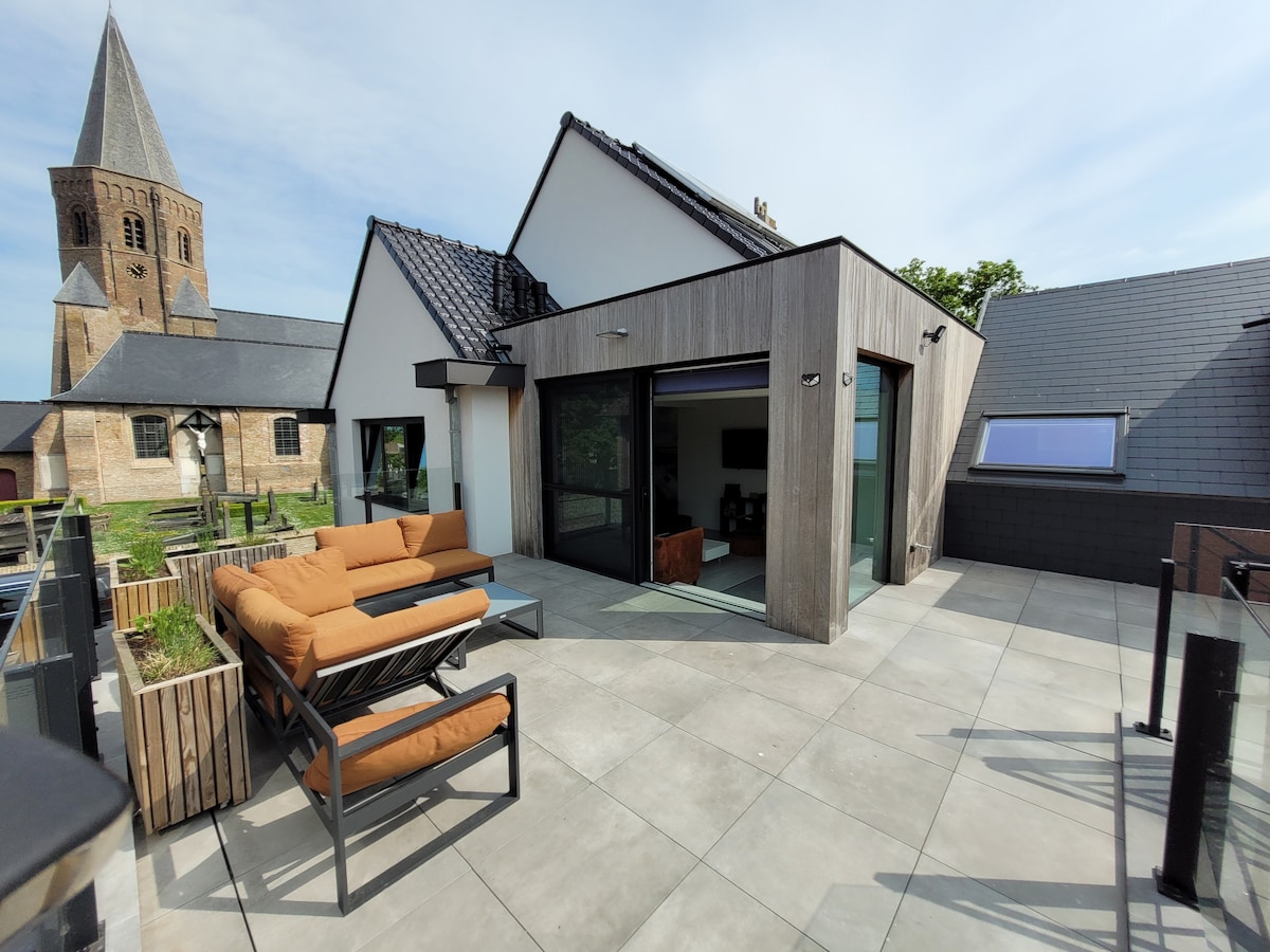 Velkommen til d 'Ereplatse! Den nybygde leiligheten vår ligger i landsbyen Zuienkerke i hjertet av Polders. d'Ereplatse er et utmerket valg hvis du leter etter en komfortabel og sentral innkvartering mellom Brugge og kysten. Havet og Brugge kan nås med kollektivtransport, bussen stopper rett utenfor døren. Etter en fin tur kan du slappe av i loungen eller i hengekøyen. I Zuienkerke betaler du ikke Citytax du kan leie elsykler (bestill på forhånd)