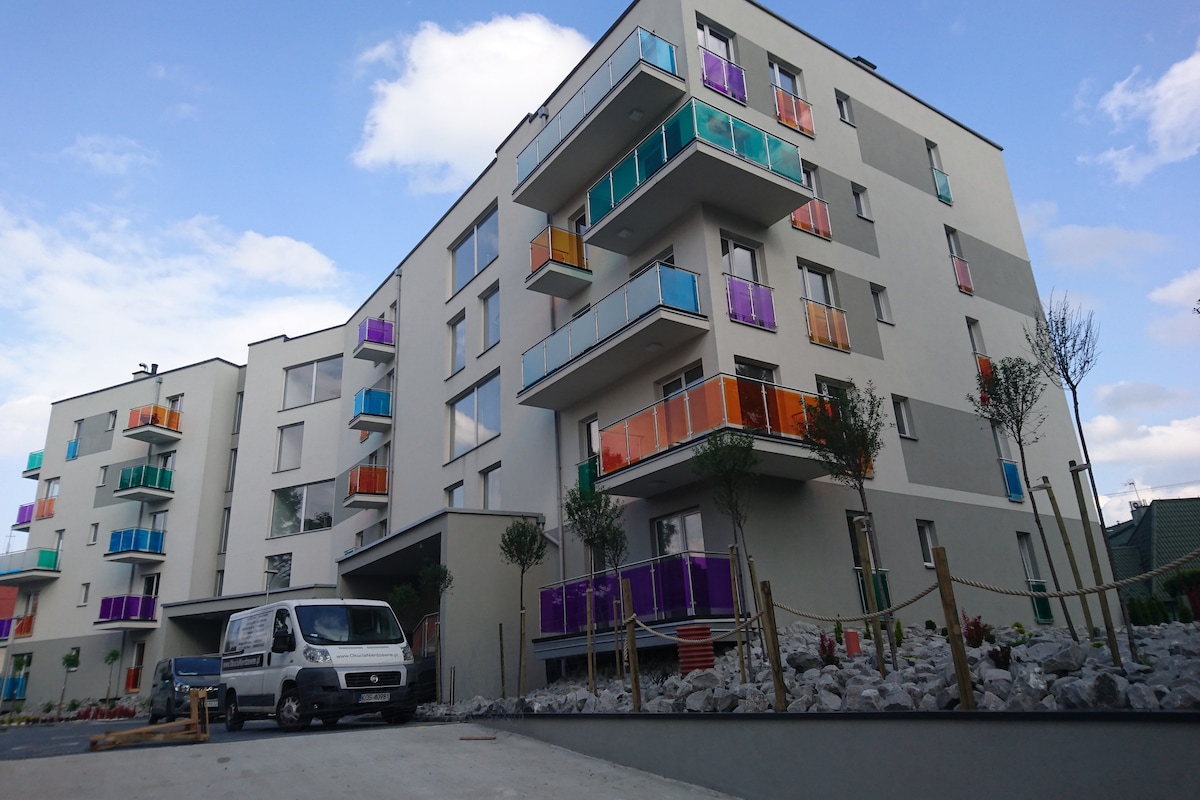 Komfortabel leilighet i sentrum. Hele leiligheten på 48 kvm er tilgjengelig – et soverom med dobbeltseng (140 cm bred) og en stue med kjøkkenkrok. Stuen har en sovesofa. Nær de viktigste monumentene i byen. ( 400 meter rådhus, 950 meter - torget i gamlebyen, slott). Én ledig plass er tilgjengelig i privat inngjerdet parkering, rett ved siden av bygningen. I tillegg er det også offentlig parkering i nærheten (fra kl. 19.00 og gratis i helgene).